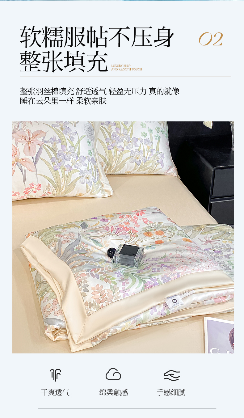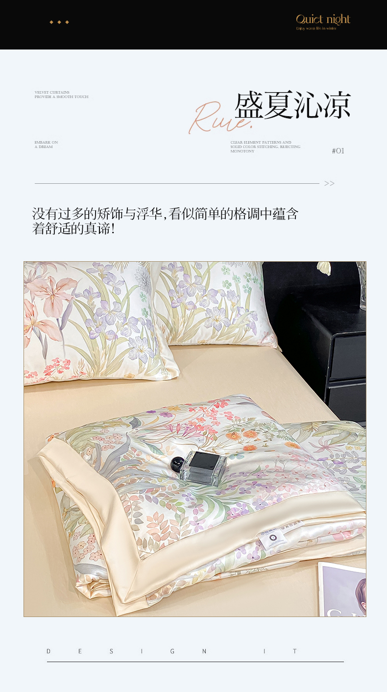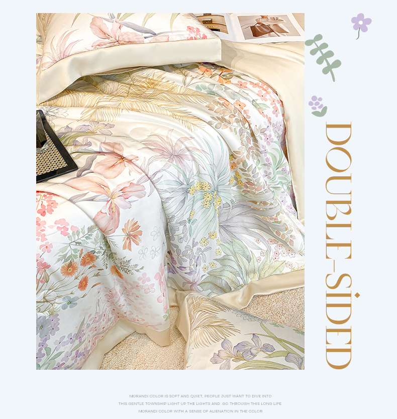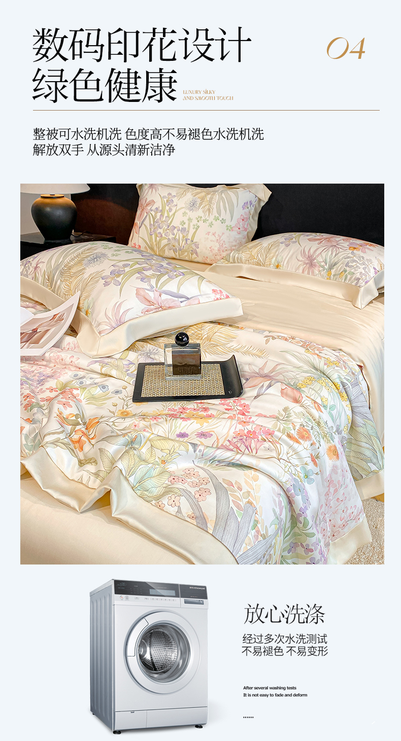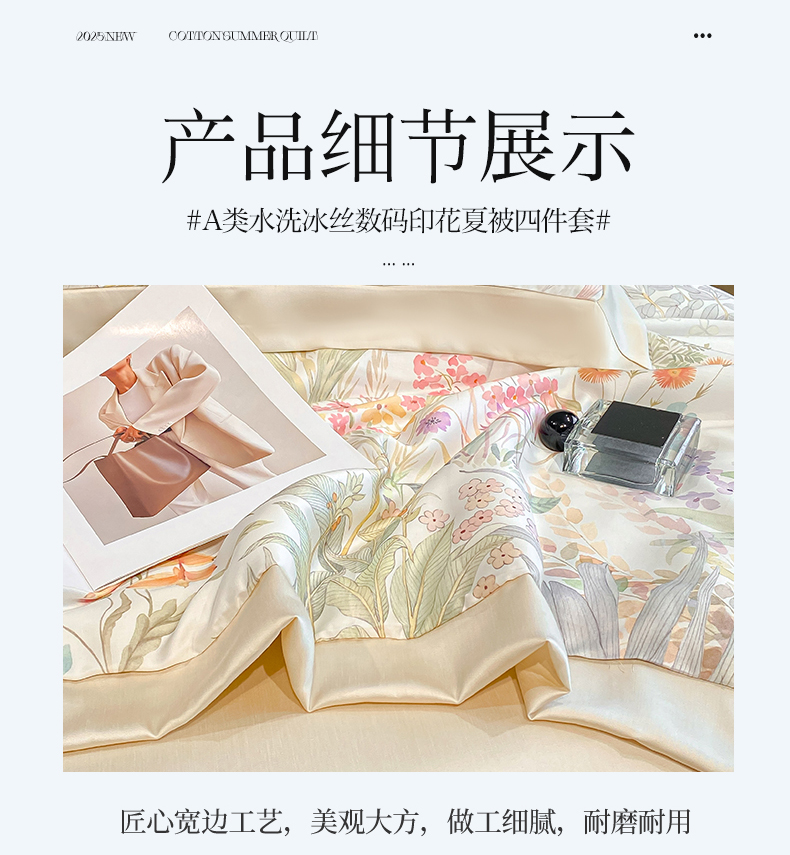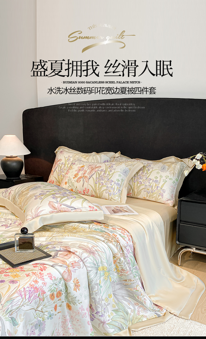 • 91家纺网 家纺一手货源 找家纺 笙意家纺 2026A类水洗冰丝数码印花宽边夏被四件套时染