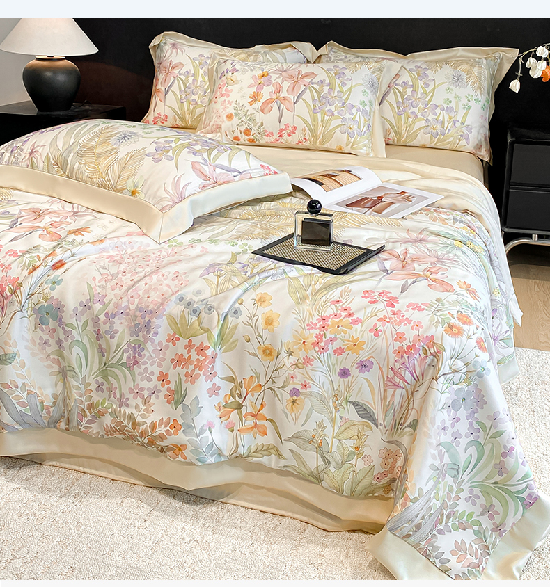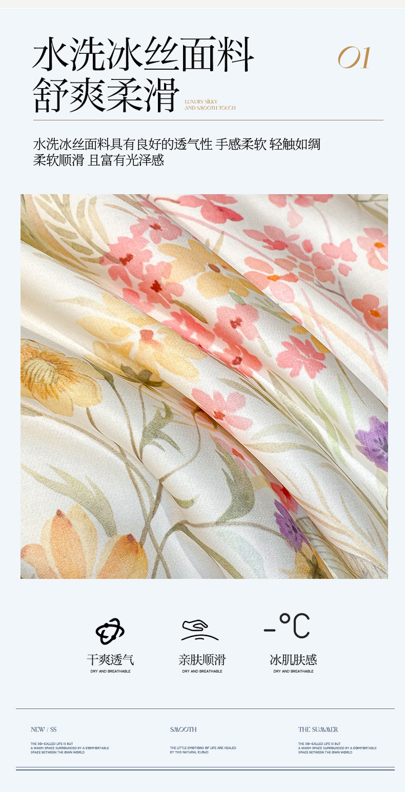 笙意家纺 2026A类水洗冰丝数码印花宽边夏被四件套时染