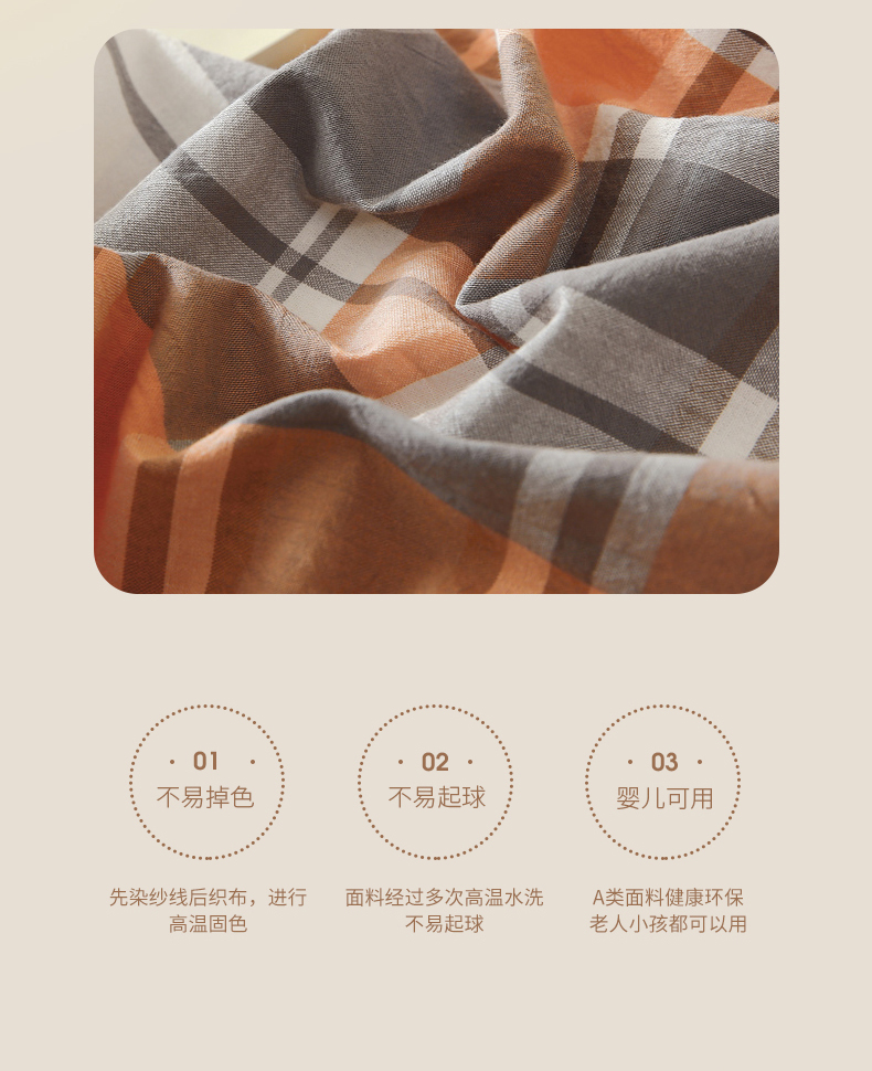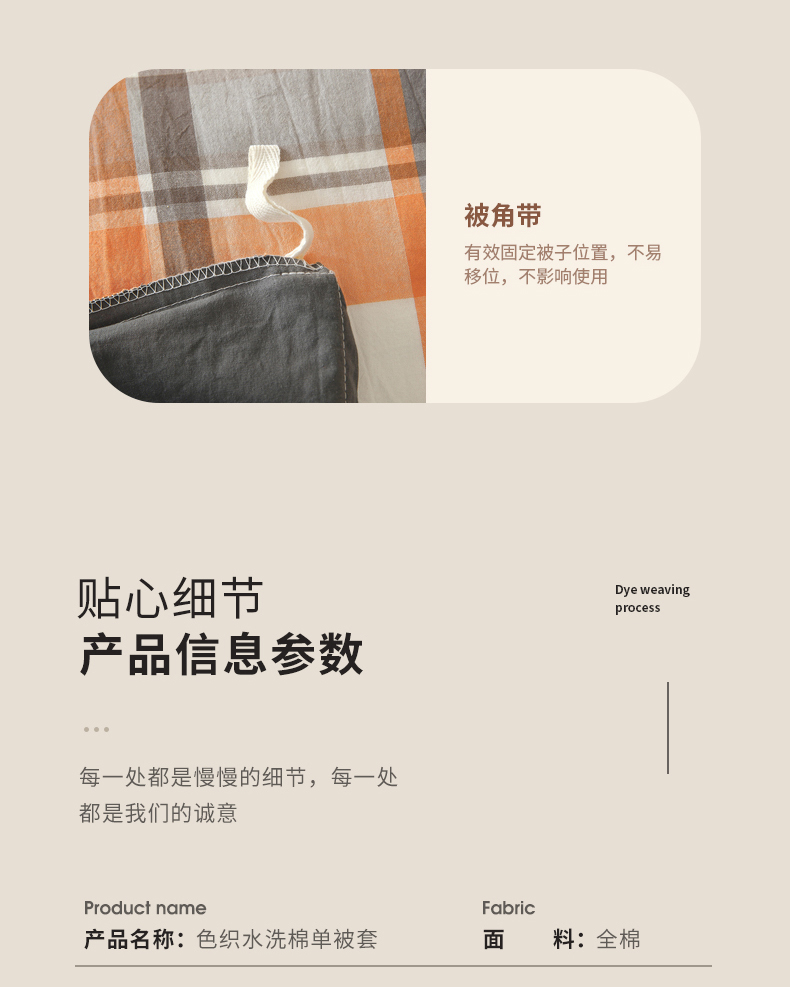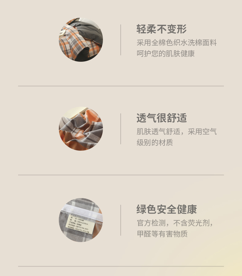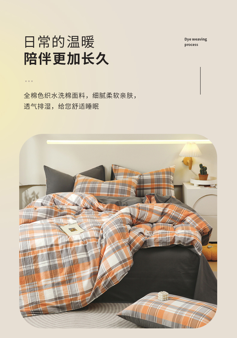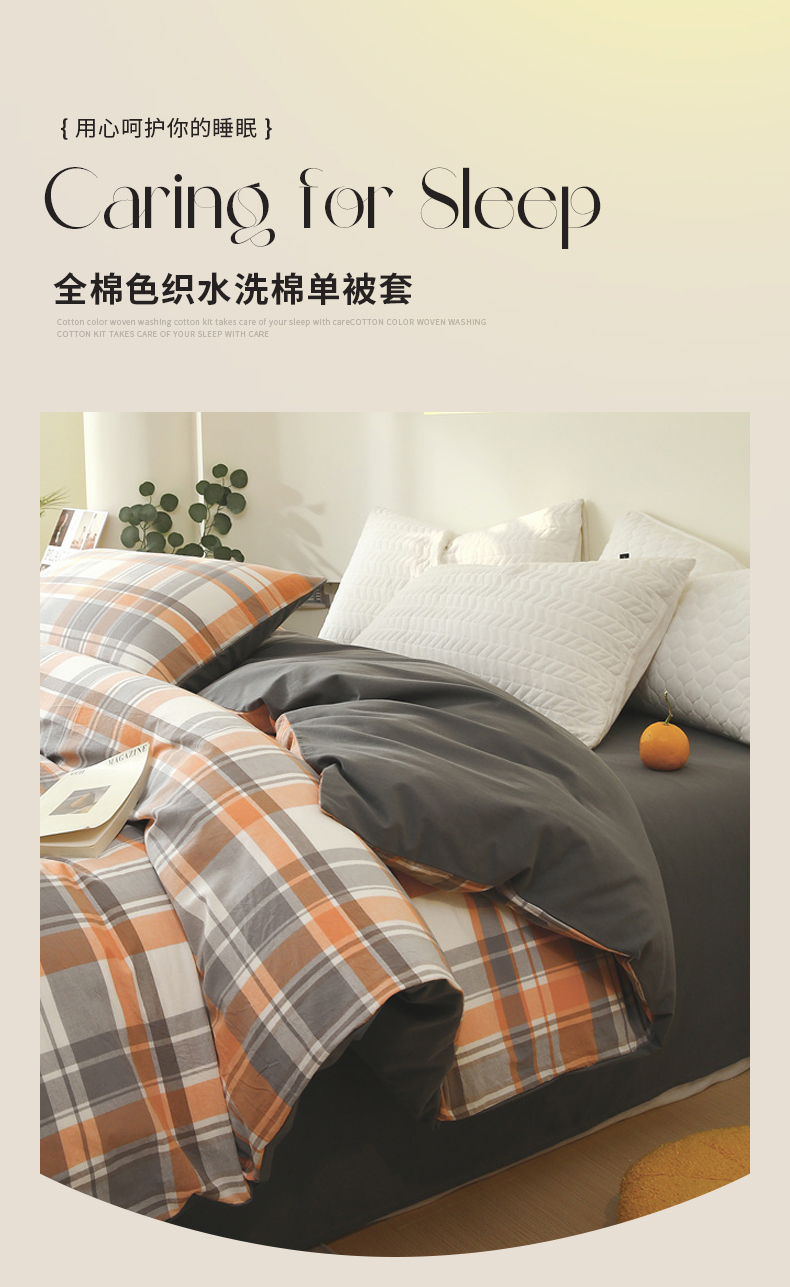 商品名称:春皖家纺 2026新款色织AB版水洗棉三件套四件套单品系列(单被套风格一) 素雅-莱恩
