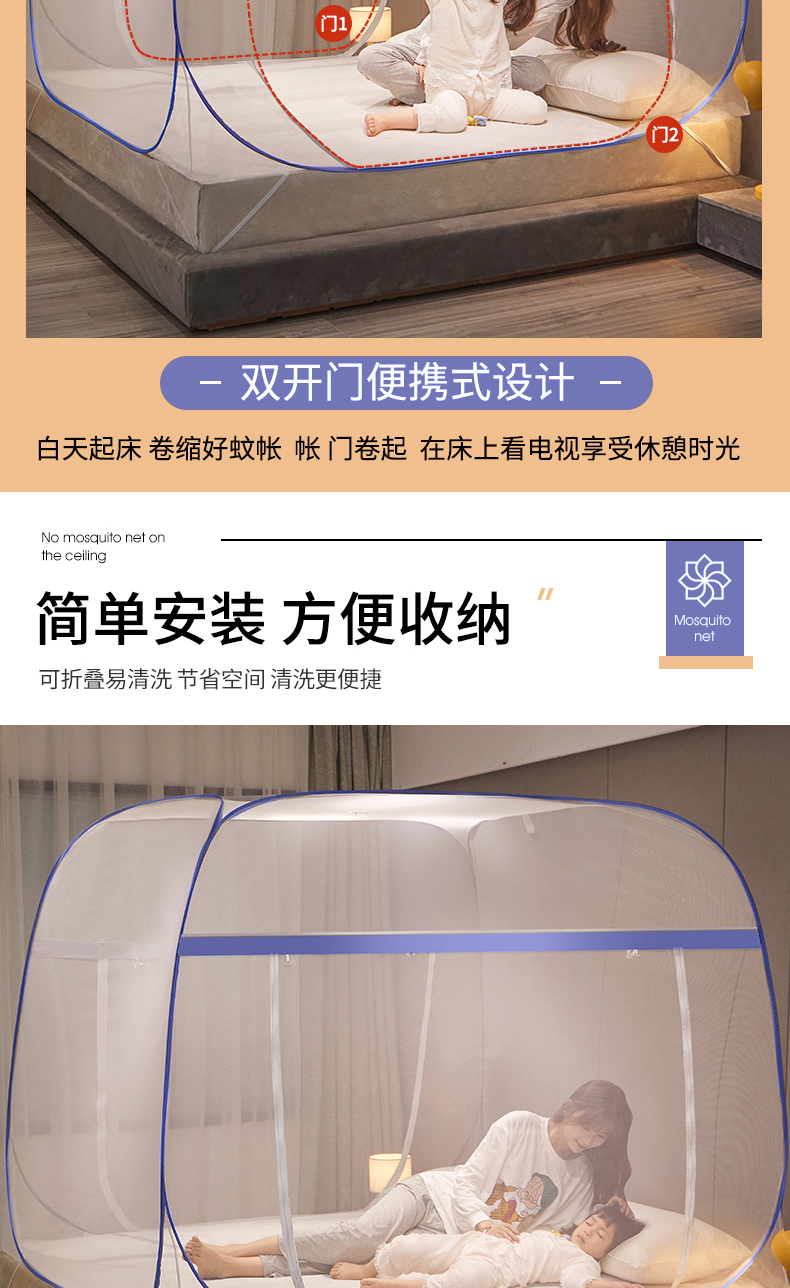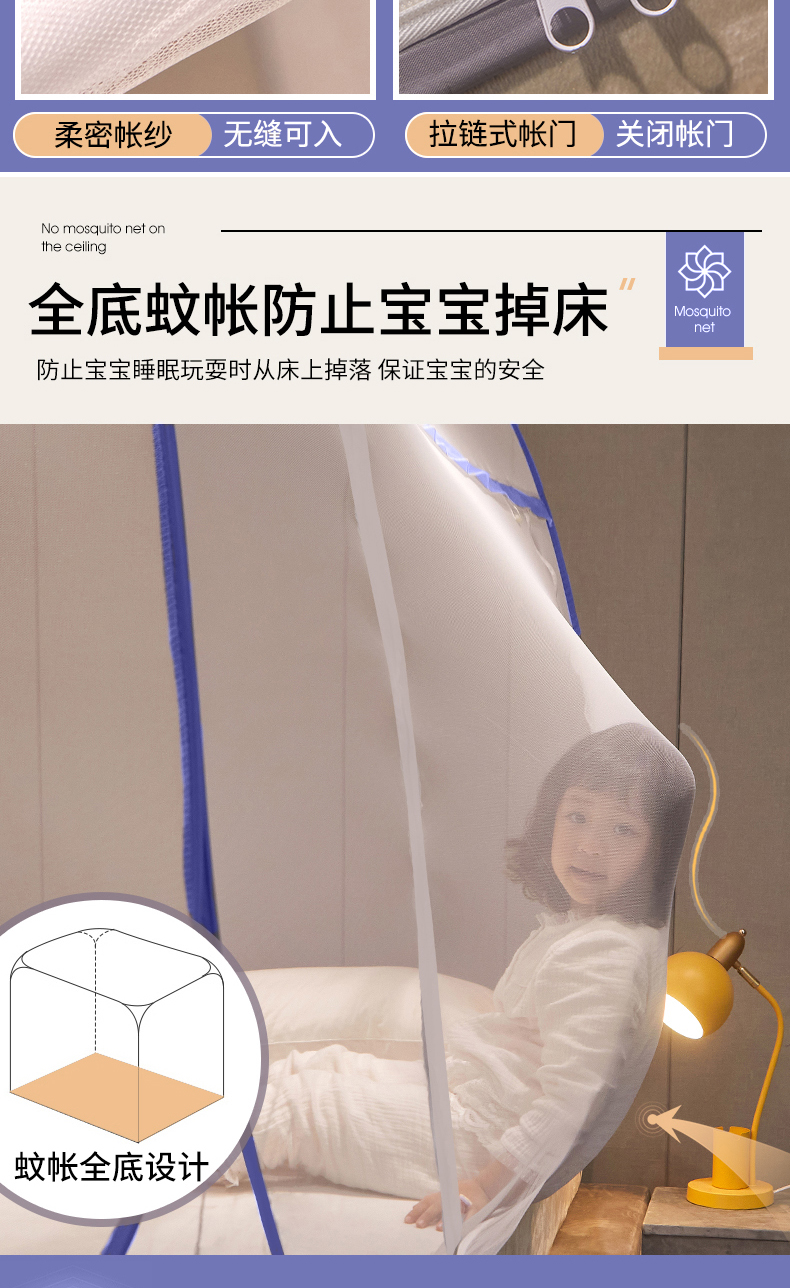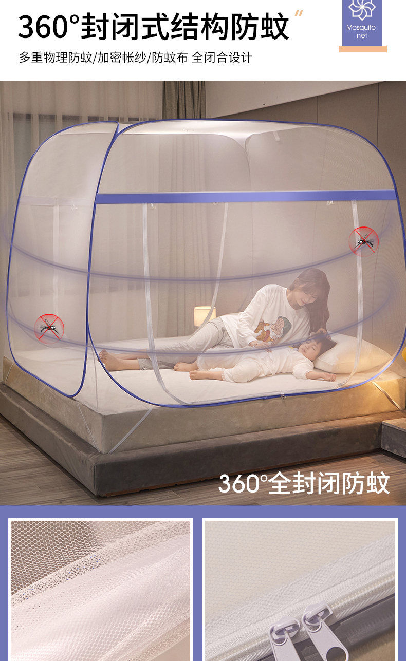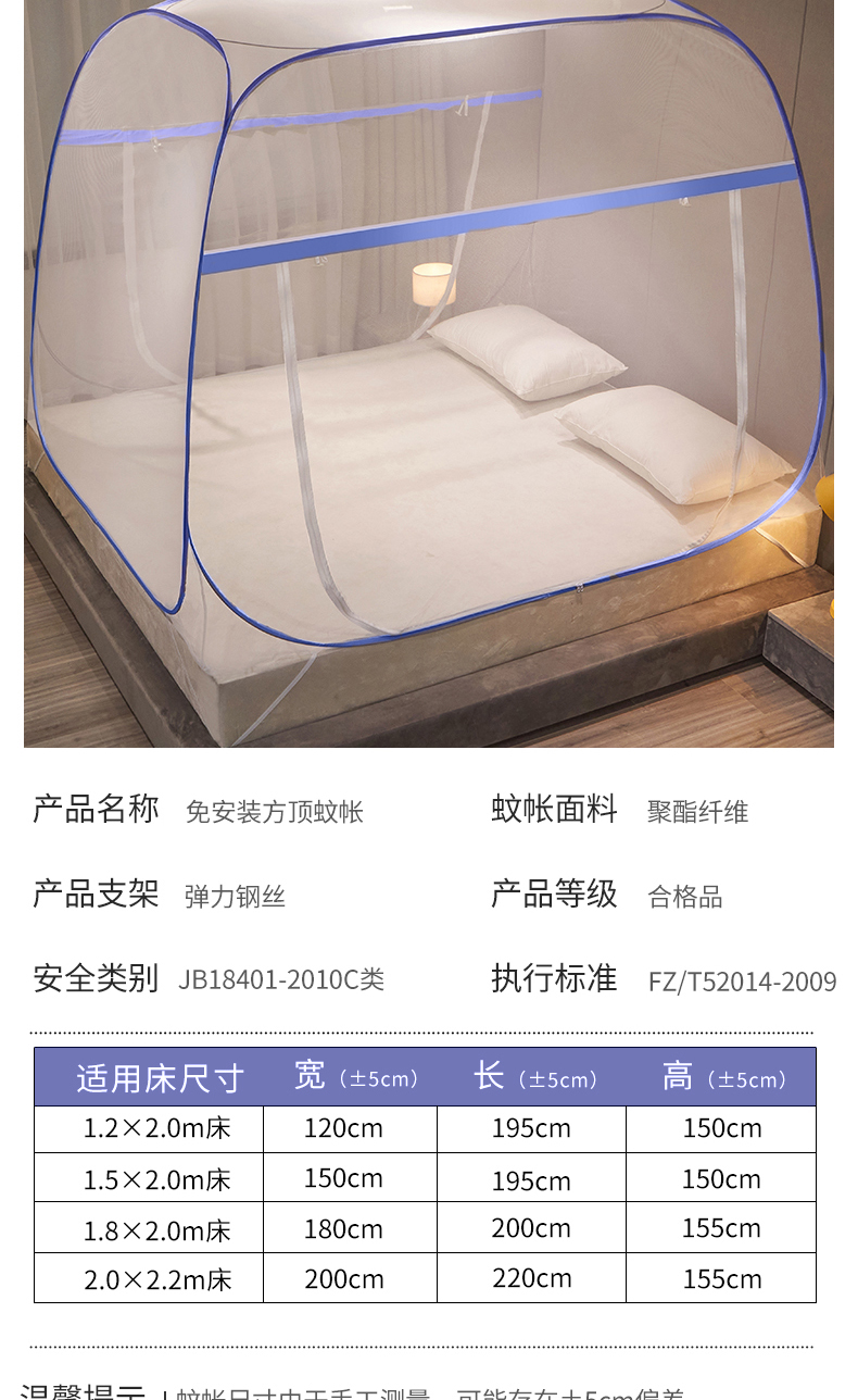 当前位置: 91家纺网 > 商品网购 > 床上用品 > 蚊帐 > 坐床式蚊帐 > 豪梦园蚊帐工厂店 2026新款免安装促量款加密方顶蚊帐 网纱顶-清新蓝