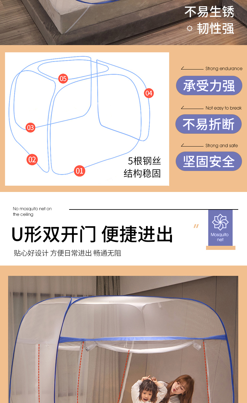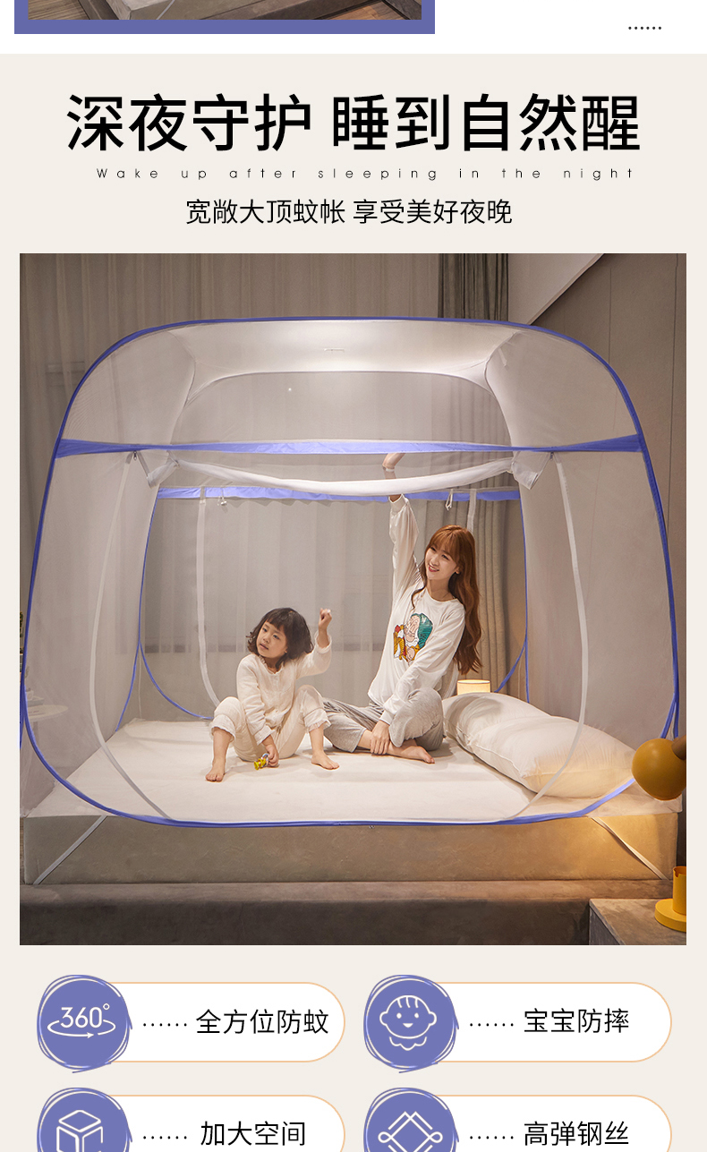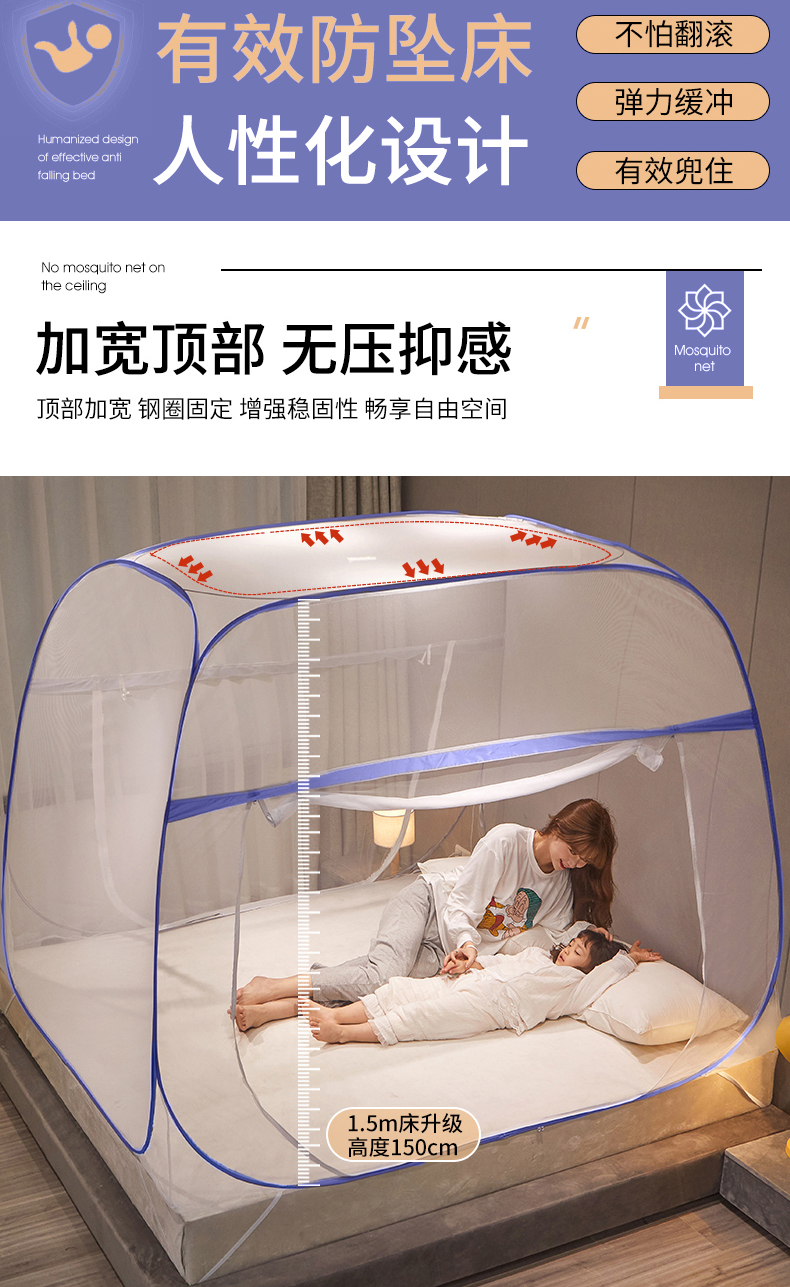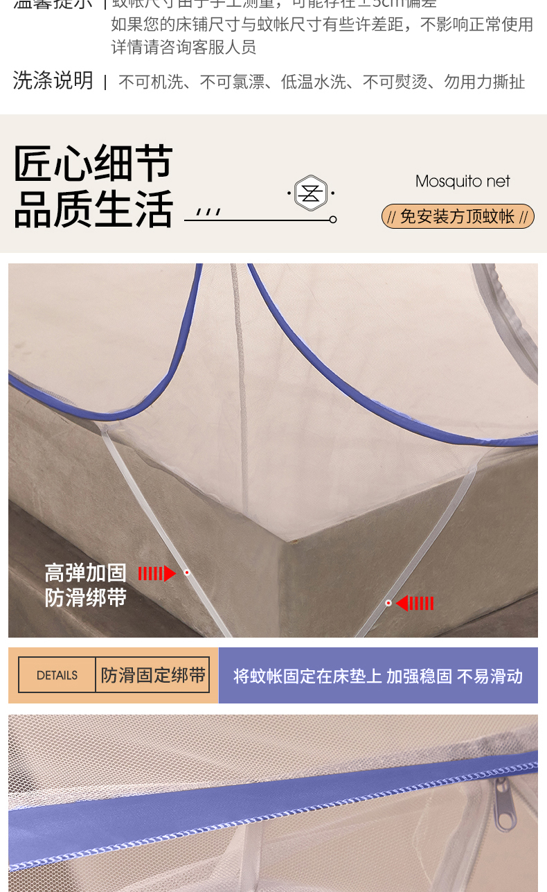 当前位置: 91家纺网 > 商品网购 > 床上用品 > 蚊帐 > 坐床式蚊帐 > 豪梦园蚊帐工厂店 2026新款免安装促量款加密方顶蚊帐 网纱顶-清新蓝