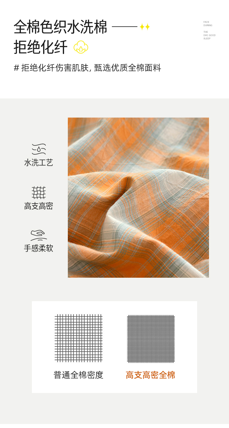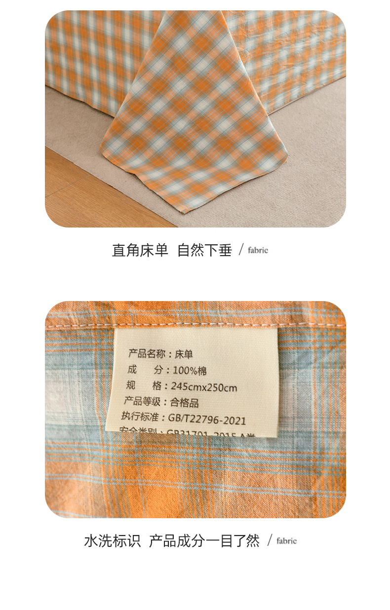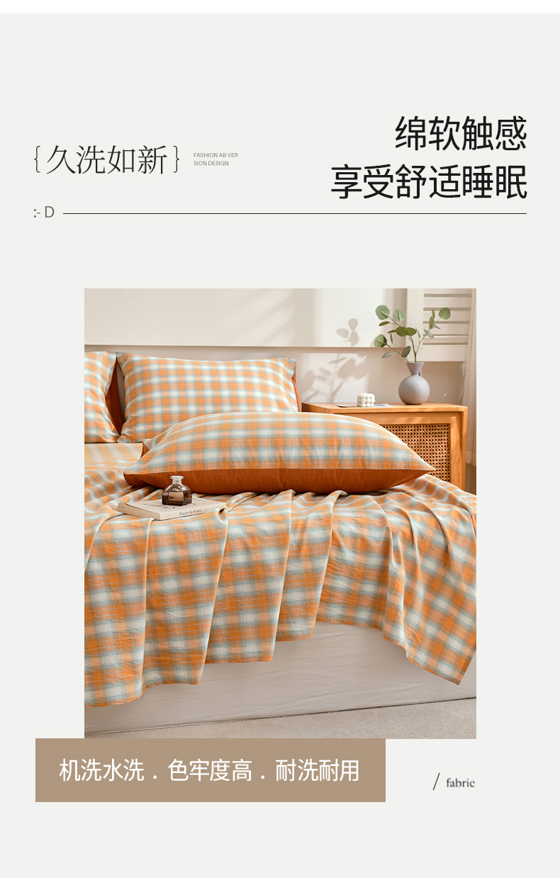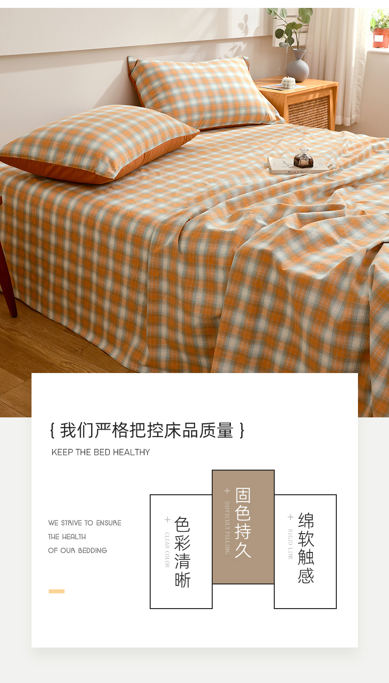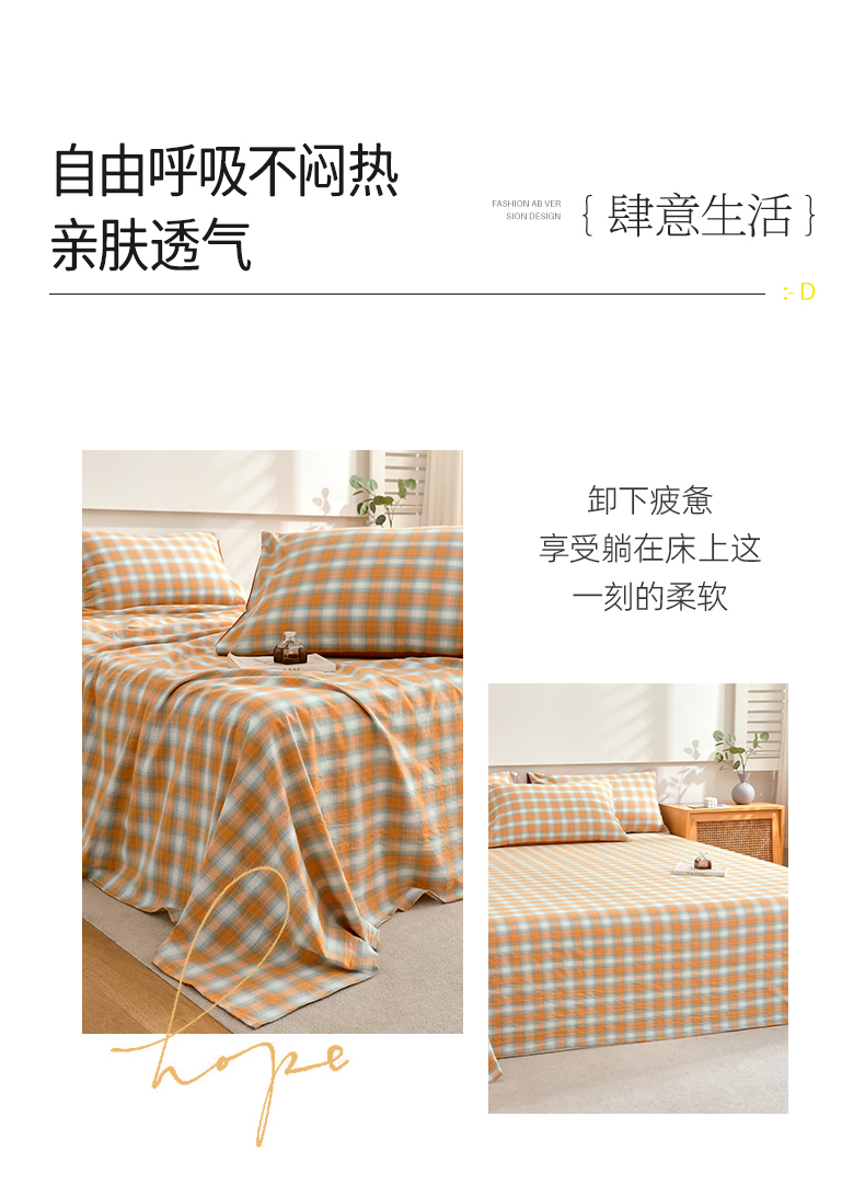 商品名称:春皖家纺 2026新款色织AB版水洗棉三件套四件套单品系列(单床单-A版风格一) 素雅-沐夏