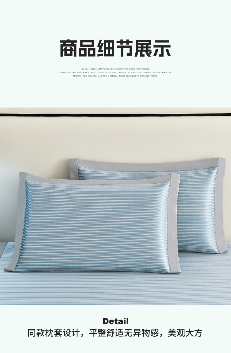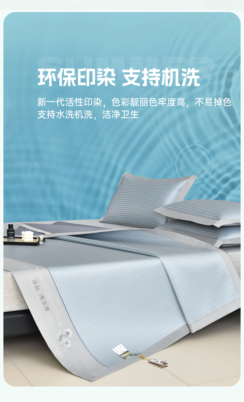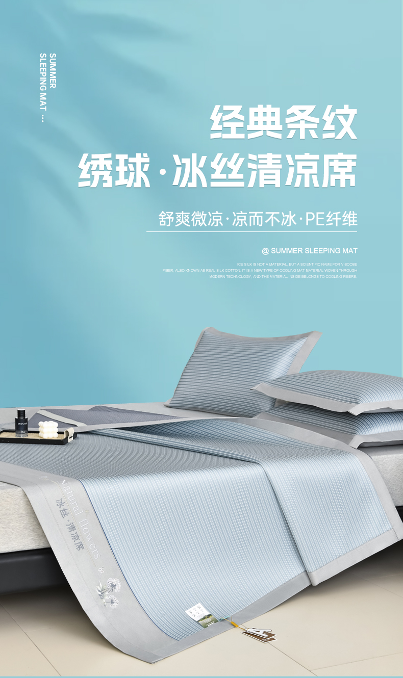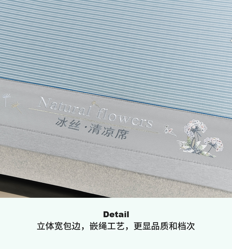 商品名称:小牛席业 2026新款经典条纹-绣球冰丝清凉席系列凉席藤席冰藤双面席冰丝席竹席凉席空调席草席三件套 蓝色