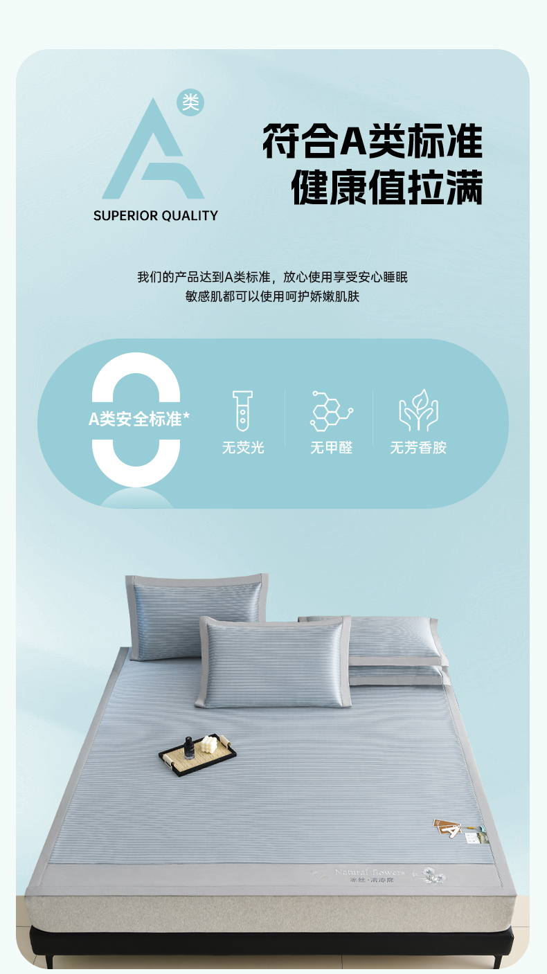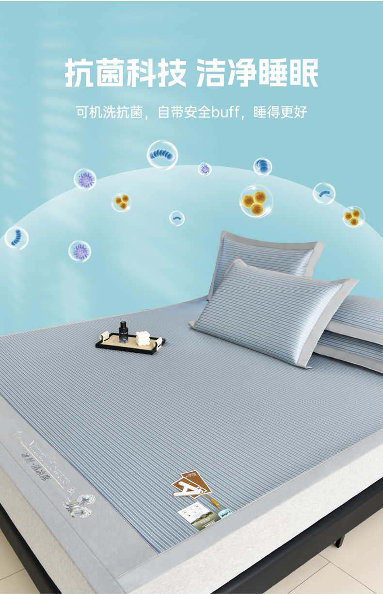 (总)小牛席业 2026新款小冰块大象凉感冰丝席凉席竹席藤席冰藤席乳胶席豆豆席,粉色,香槟,灰色,绿色,蓝色