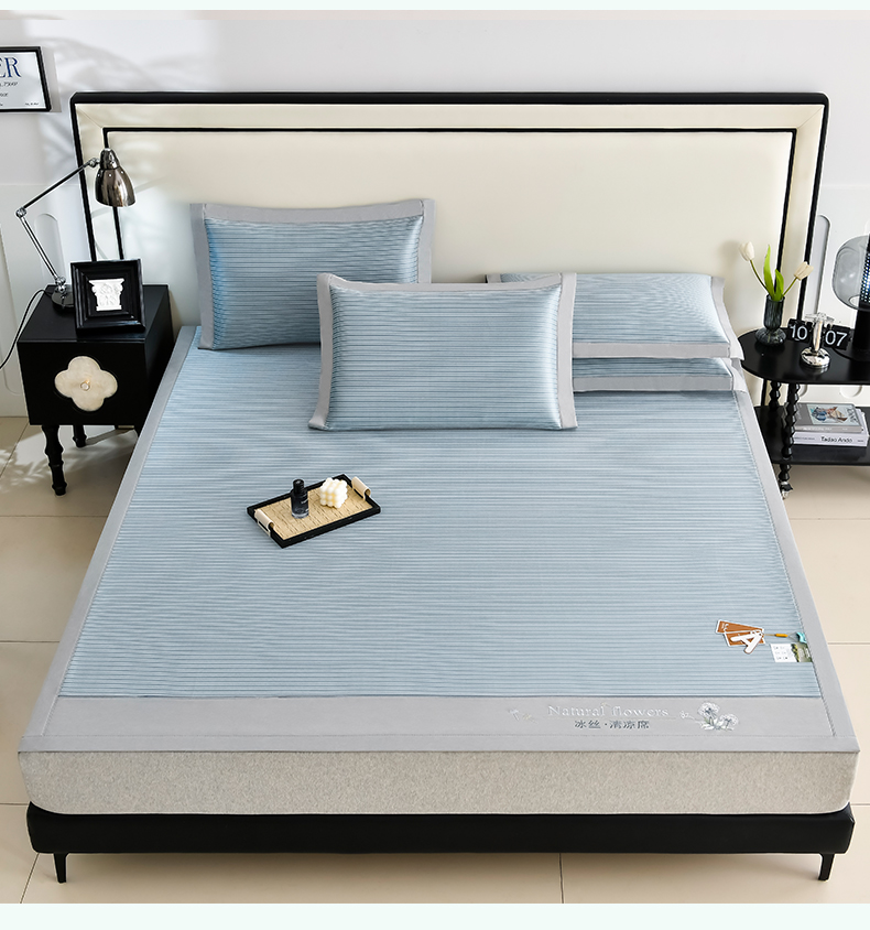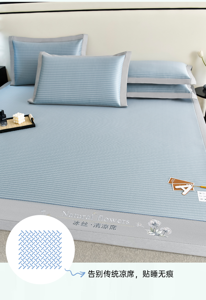 (总)2023新款超精密冰丝席-小斜纹系列-床笠款藤席凉席竹席,粉色,蓝色,绿色,银灰
