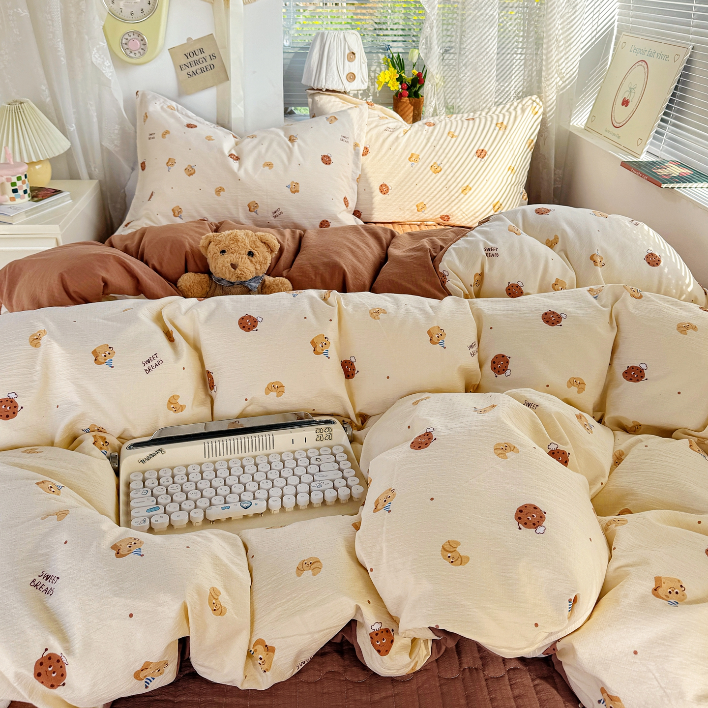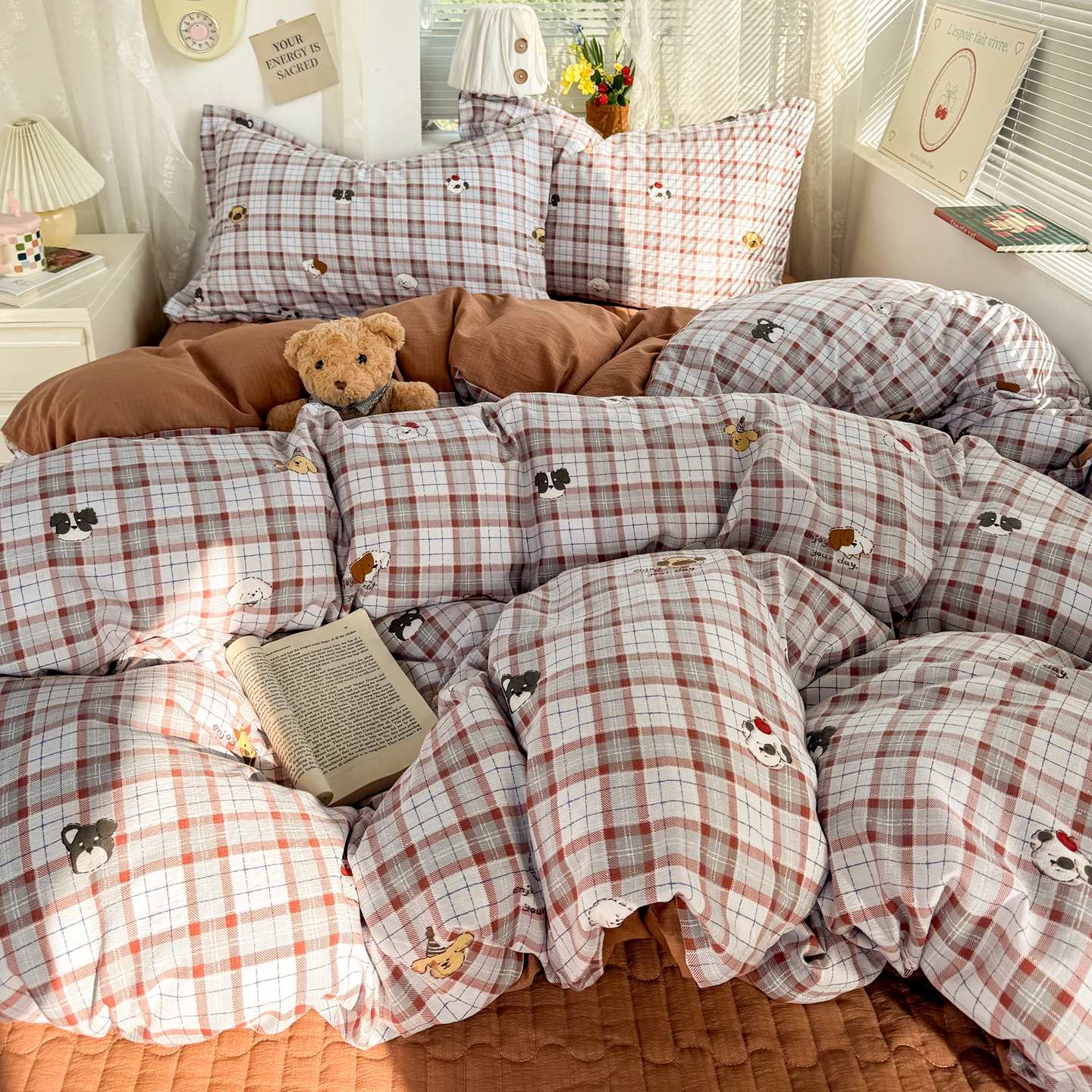 麦朵家居 2026新款双层皱皱纱仿棉床盖款四件套水洗棉小清新三件套 樱桃小狗