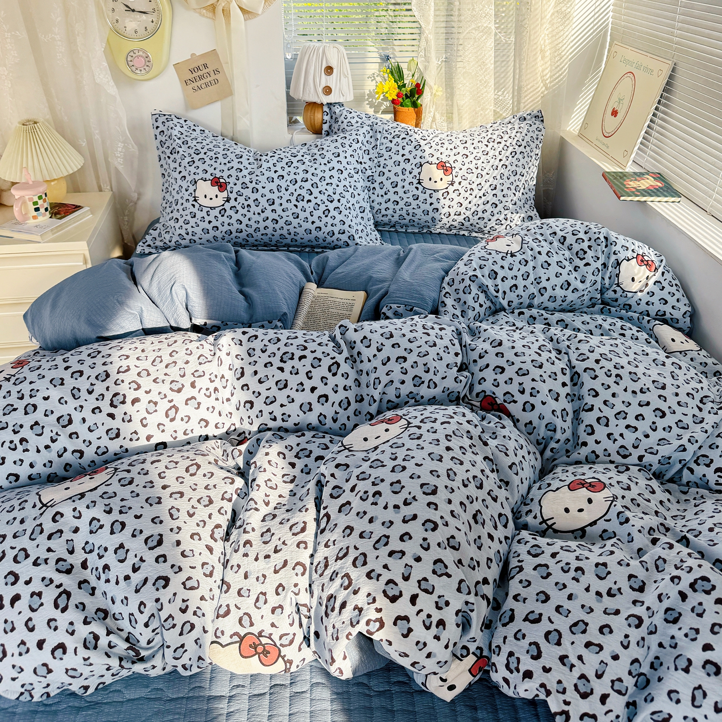 (总)麦朵家居 2026新款双层皱皱纱仿棉床盖款四件套水洗棉小清新三件套,福瑞小马,豹纹猫咪,蛋糕kt猫,萌宠乐园,泡芙猫咪-粉,泡芙猫咪-蓝,曲奇芝士,线条小狗,香芋小兔,樱桃小狗