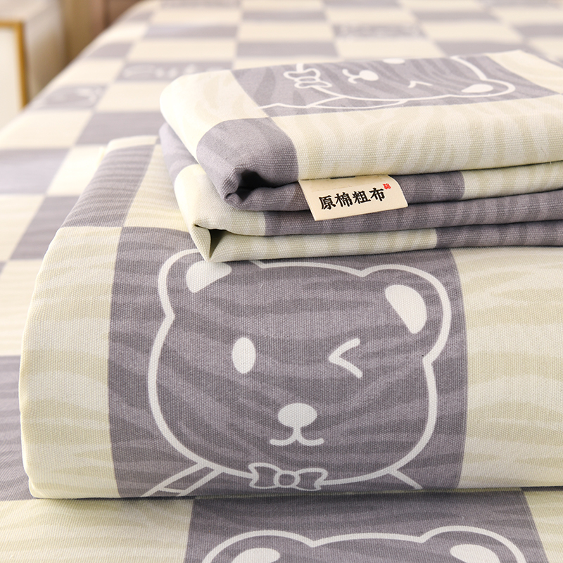 2026新款细纱老粗布床单床笠凉席席子三件套 莫兰迪熊