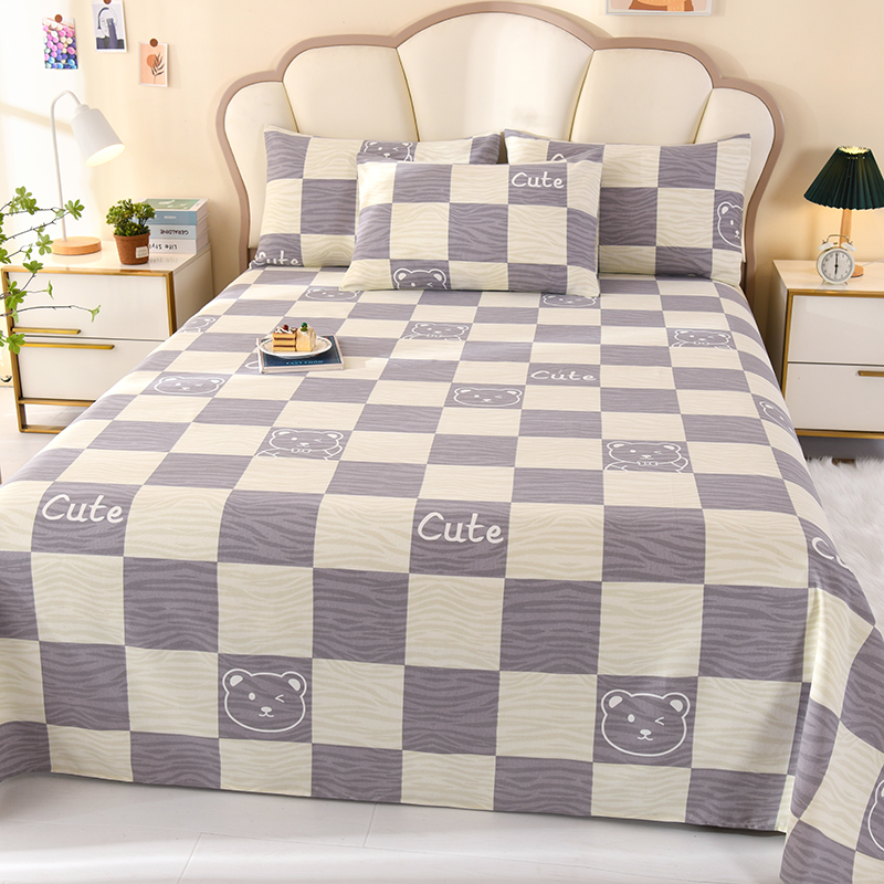 • 91家纺网 家纺一手货源 找家纺 2026新款细纱老粗布床单床笠凉席席子三件套 莫兰迪熊