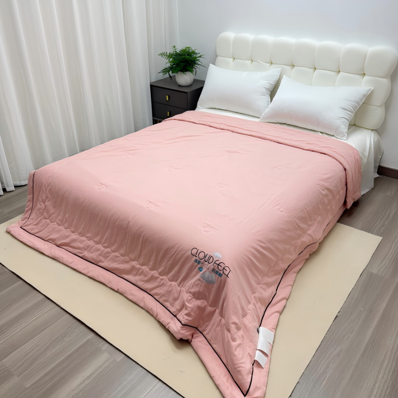 申龙家纺 2026新款云感棉斜条夏被 豆沙粉