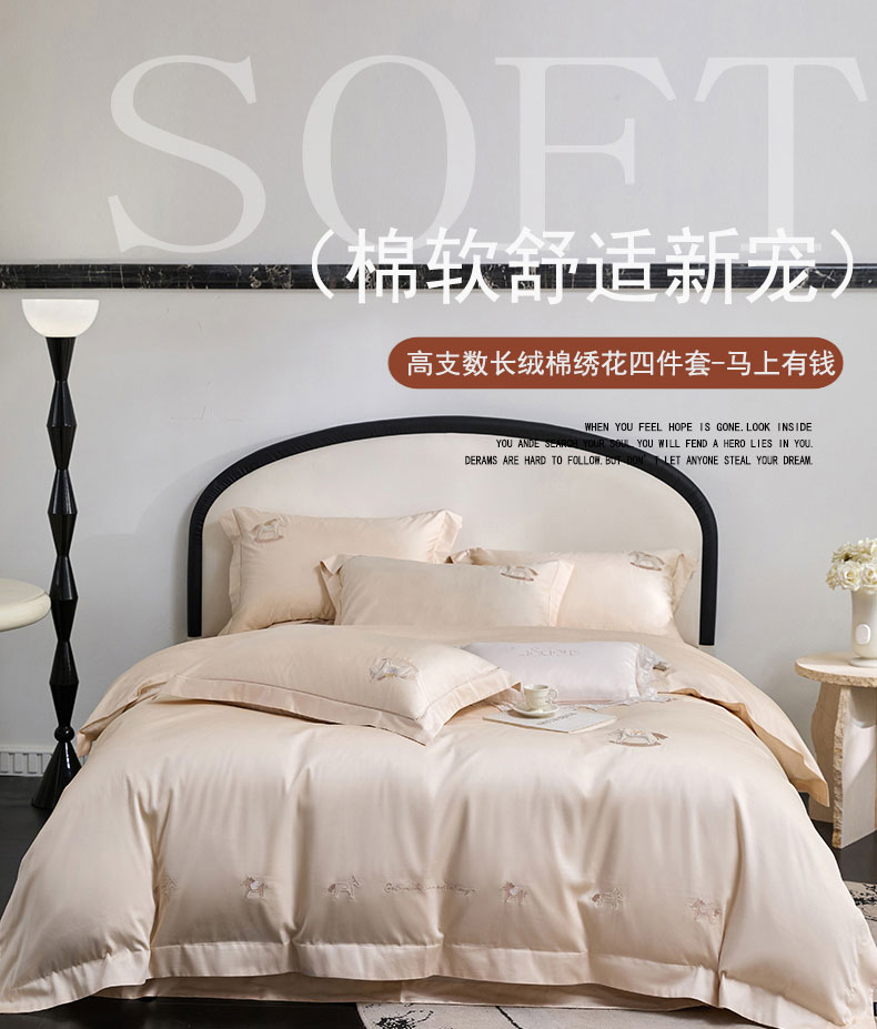 商品名称:蒂爵 2026新款贡缎100支长绒棉全棉纯棉刺绣绣花四件套高端四件套-马上有钱 马上有钱-浅香槟