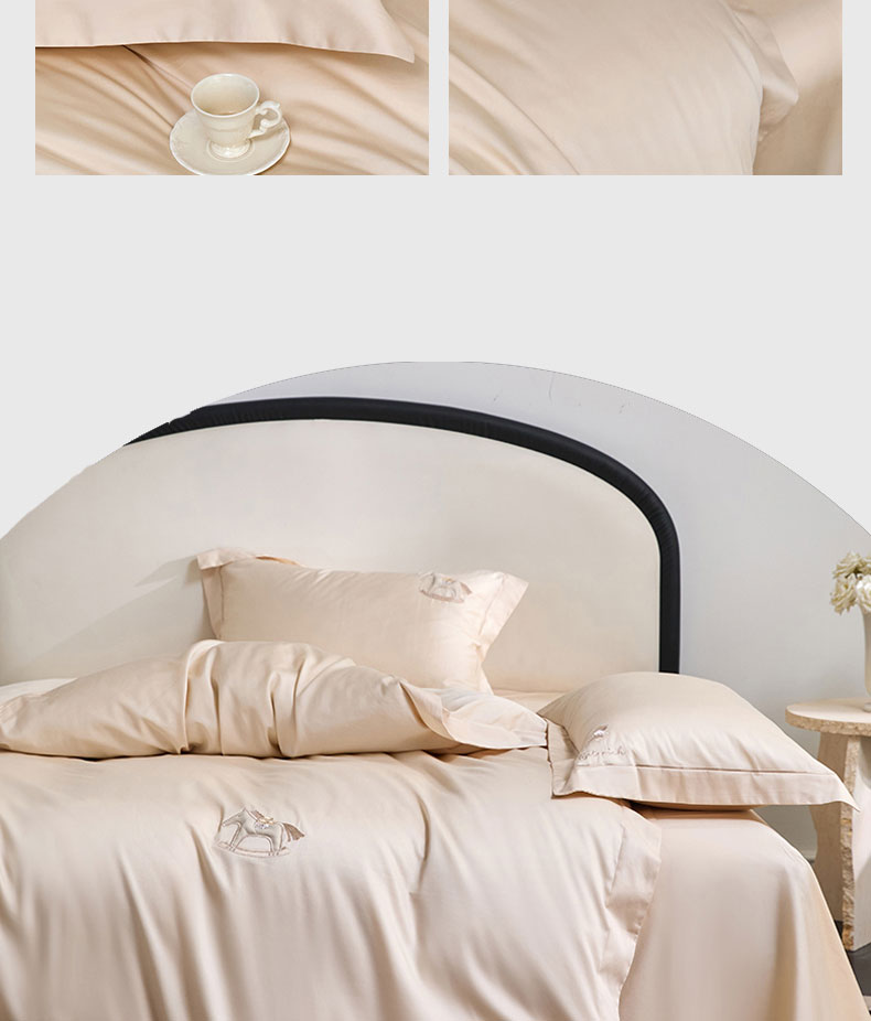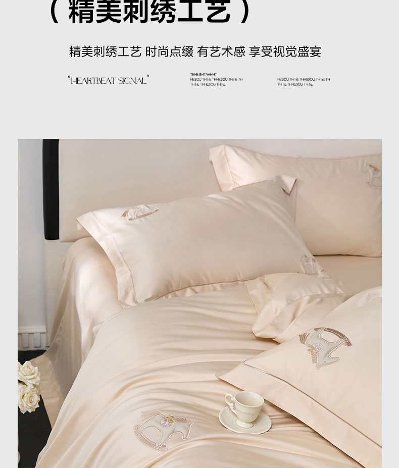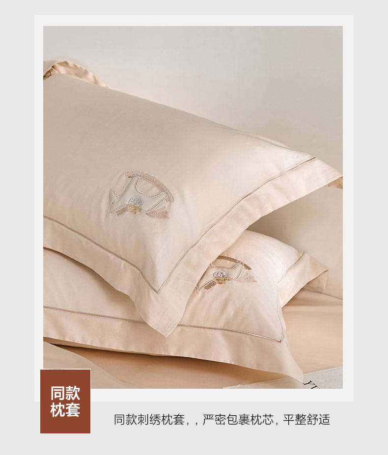 蒂爵 2026新款贡缎100支长绒棉全棉纯棉刺绣绣花四件套高端四件套-马上有钱 马上有钱-浅香槟
