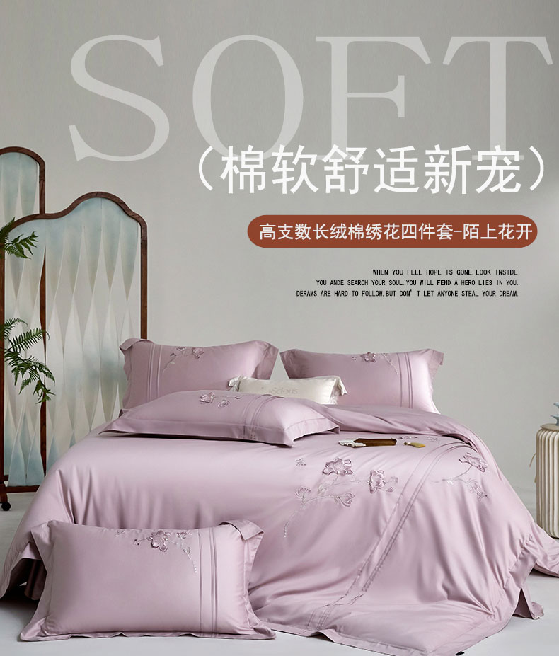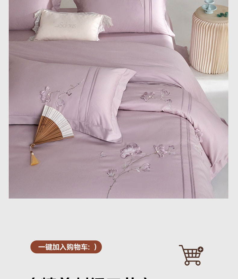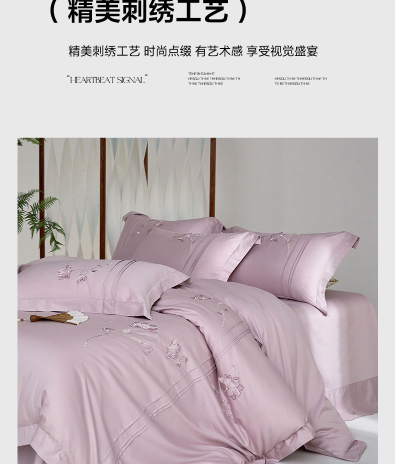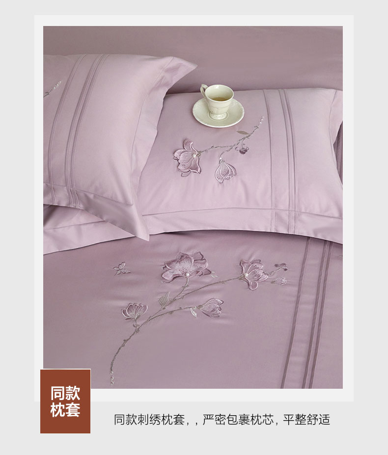 商品名称:蒂爵 2026新款贡缎100支长绒棉全棉纯棉刺绣绣花四件套高端四件套-陌上花开 陌上花开-千黛紫