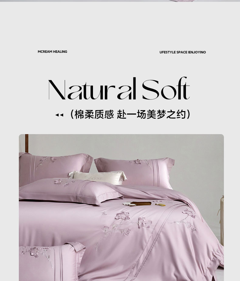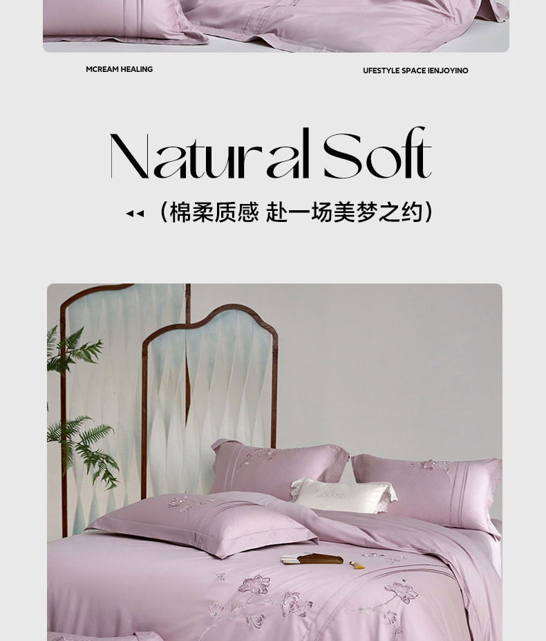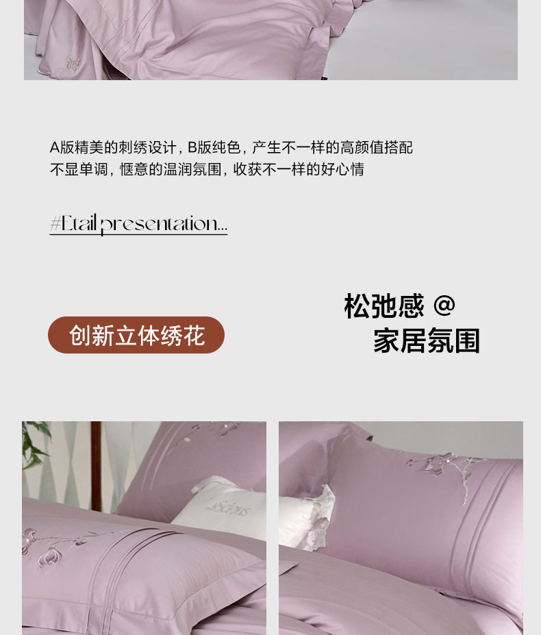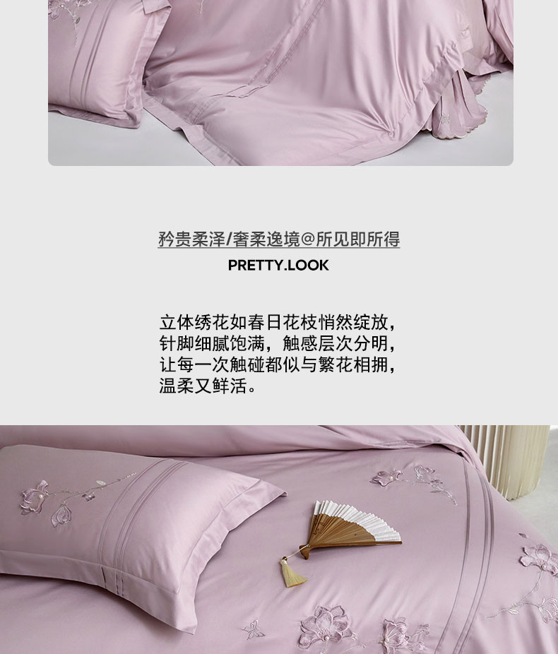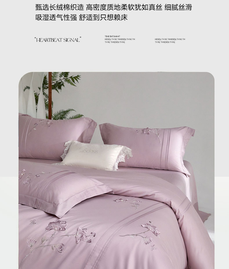 商品名称:蒂爵 2026新款贡缎100支长绒棉全棉纯棉刺绣绣花四件套高端四件套-陌上花开 陌上花开-千黛紫