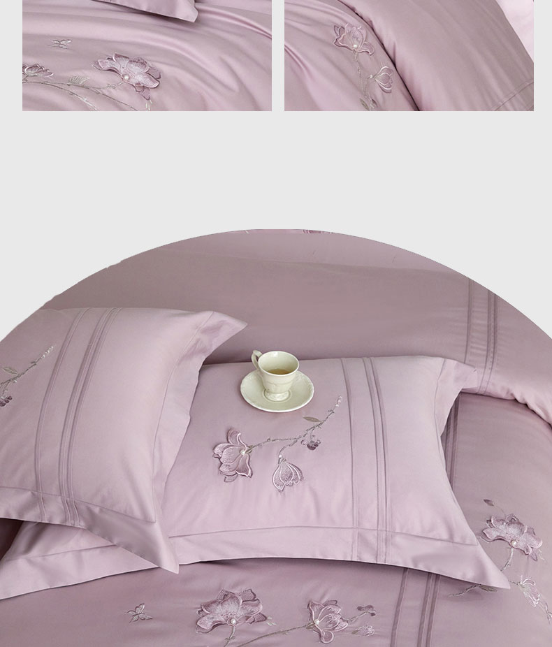 蒂爵 2026新款贡缎100支长绒棉全棉纯棉刺绣绣花四件套高端四件套-陌上花开 陌上花开-千黛紫
