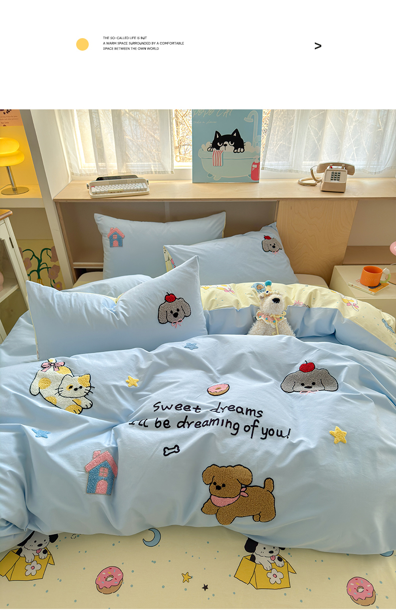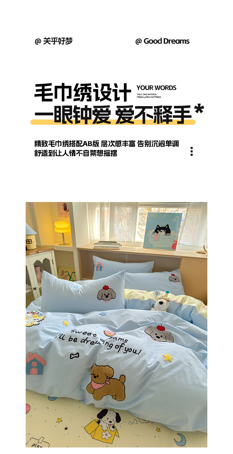 当前位置: 91家纺网 > 商品网购 > 床品套件 > 四件套 > 全棉普通四件套 > 如意朵 2026新款全棉纯棉毛巾绣四件套(第二批) 萌宠乐园