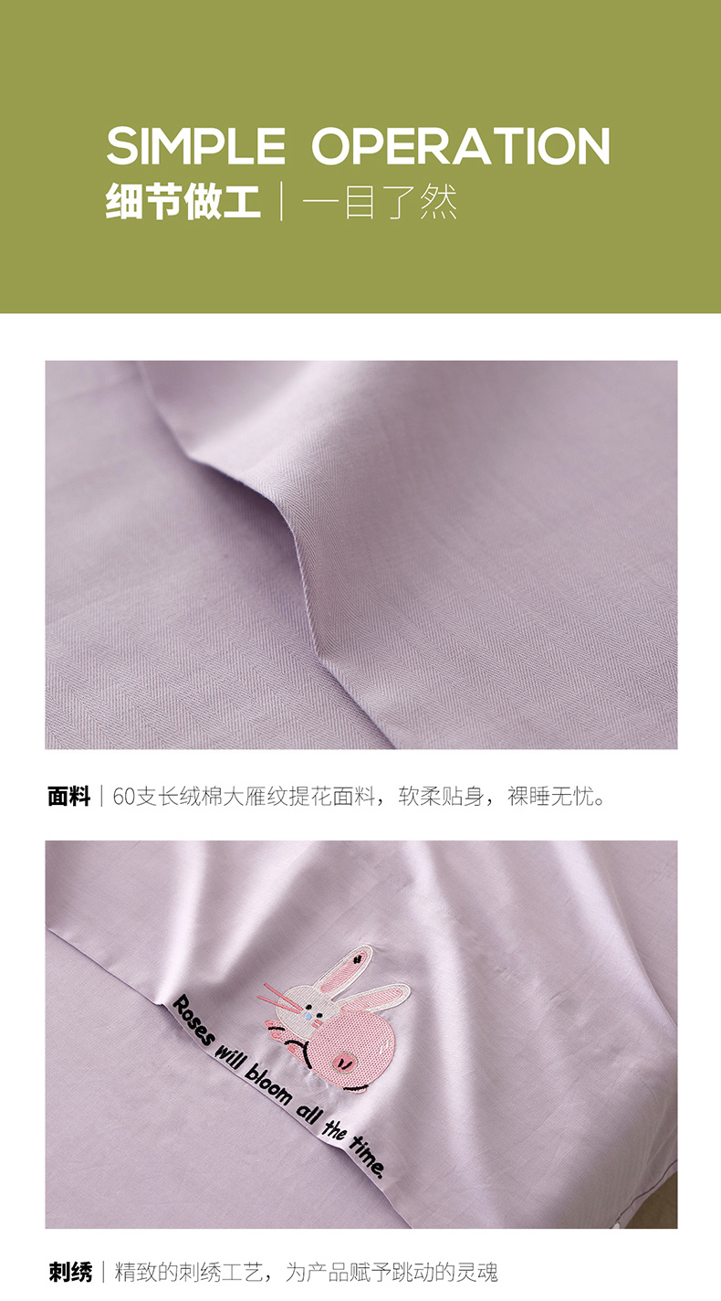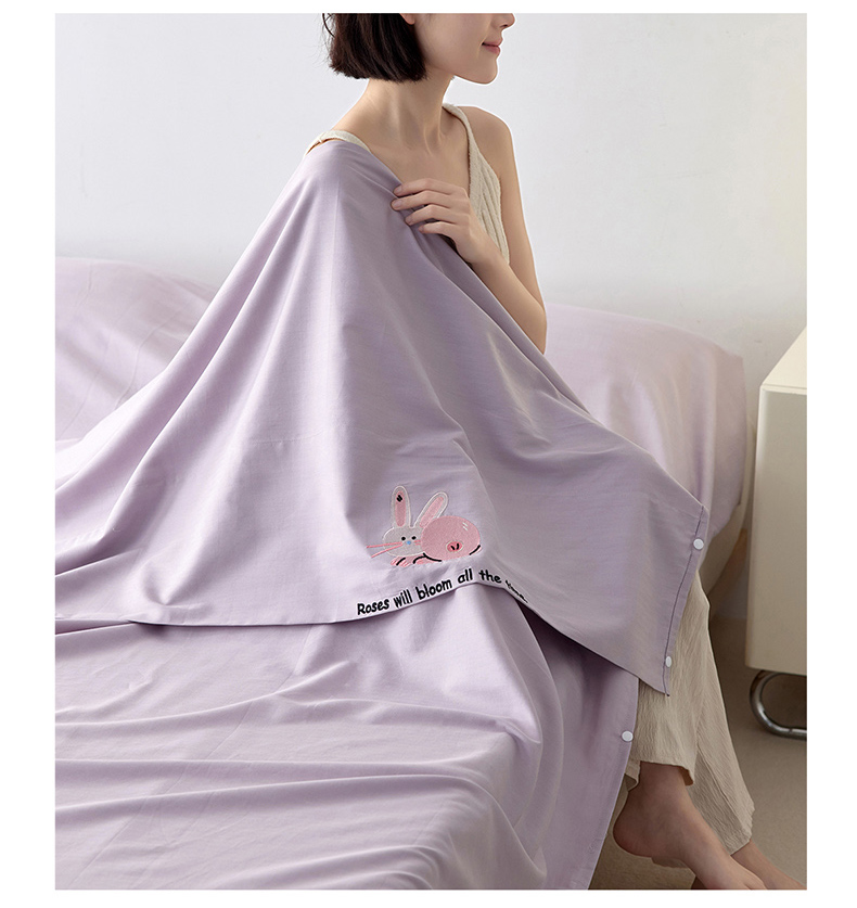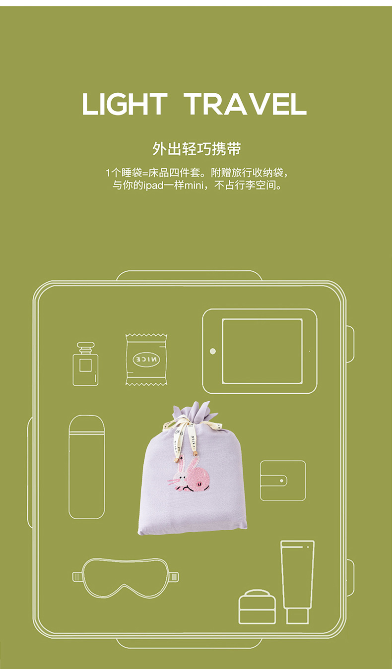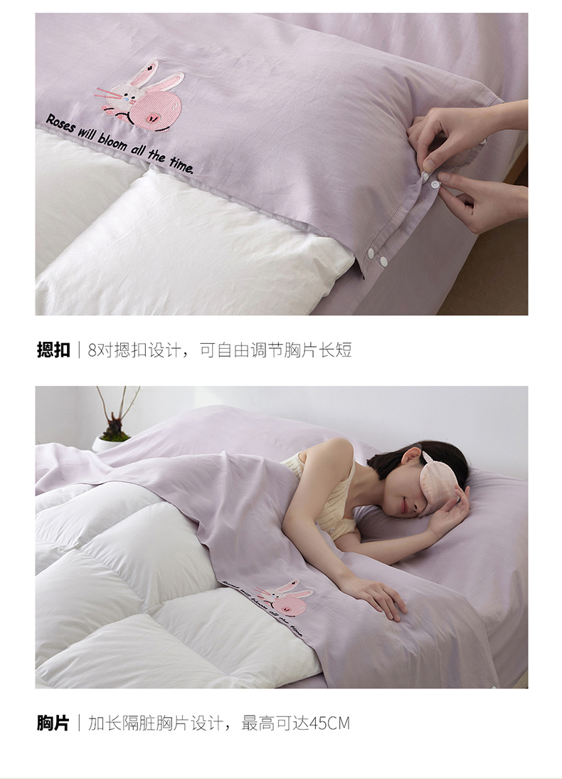 商品名称:沐珩家纺 2026新款糯感全棉定制正版卡通绣花大雁纹旅行酒店隔脏睡袋 蜜桃小兔