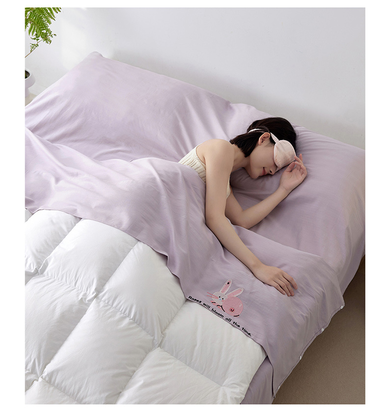 沐珩家纺 2026新款糯感全棉定制正版卡通绣花大雁纹旅行酒店隔脏睡袋 蜜桃小兔