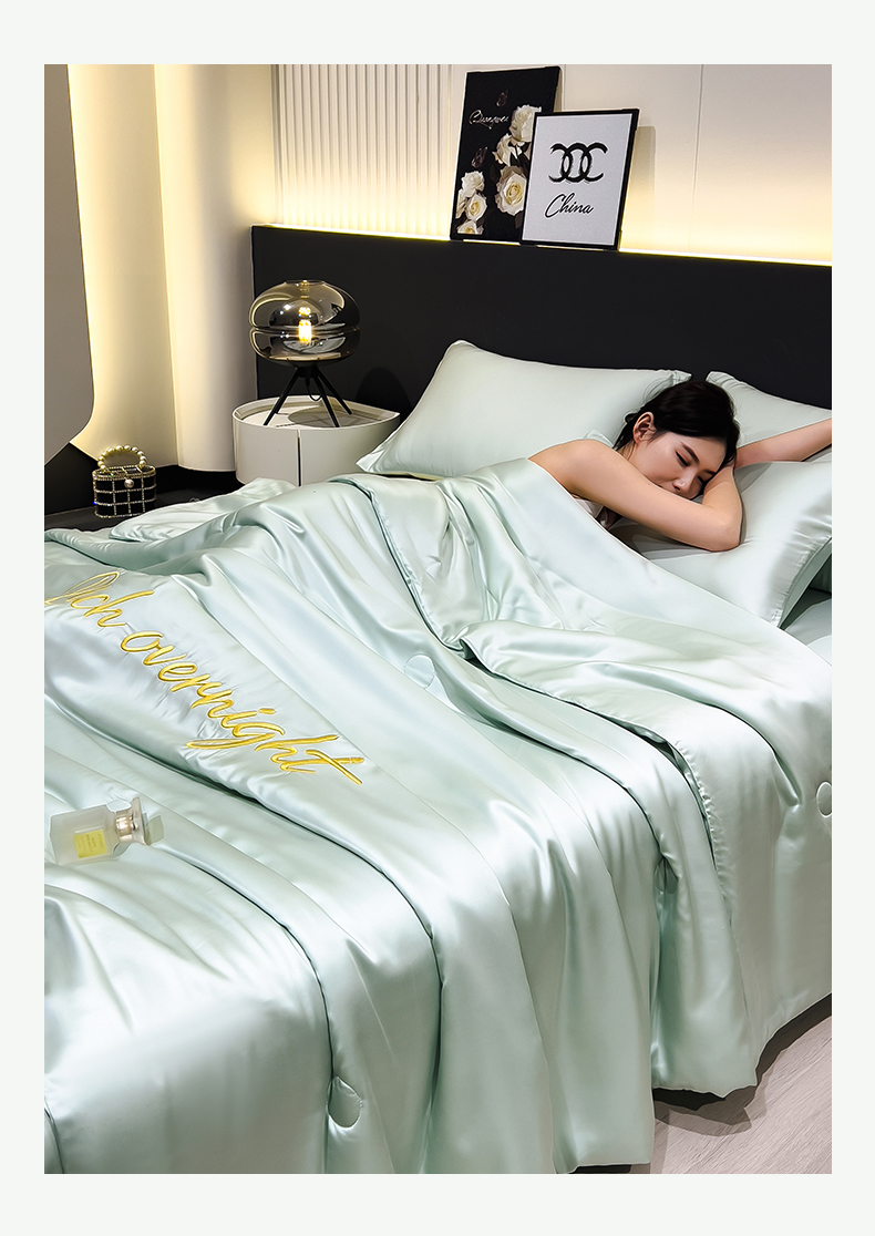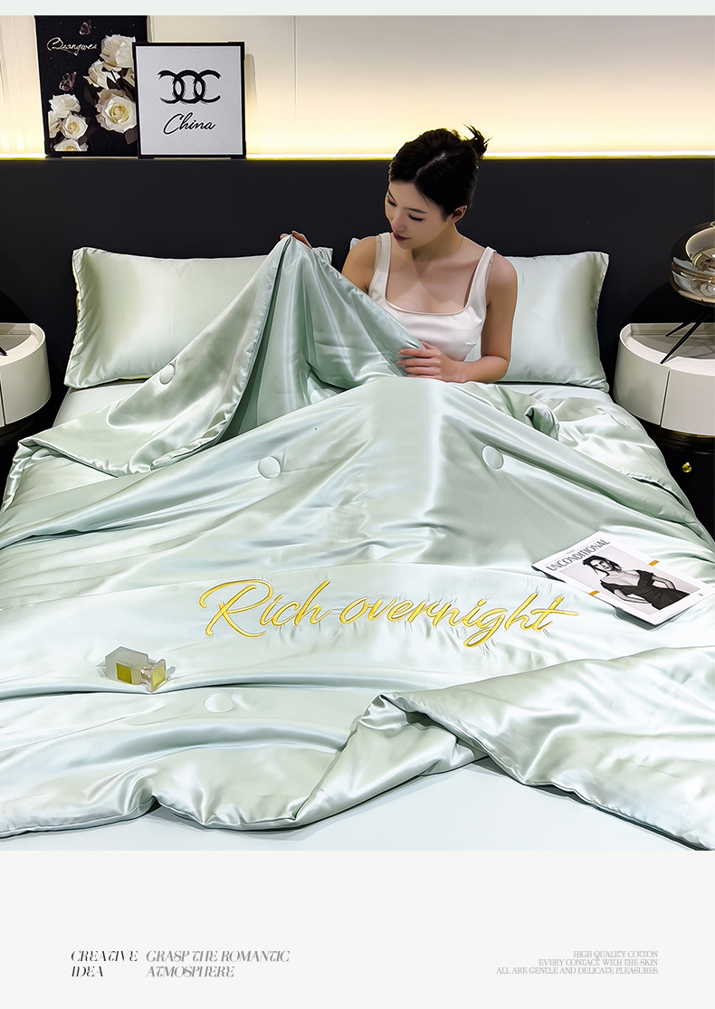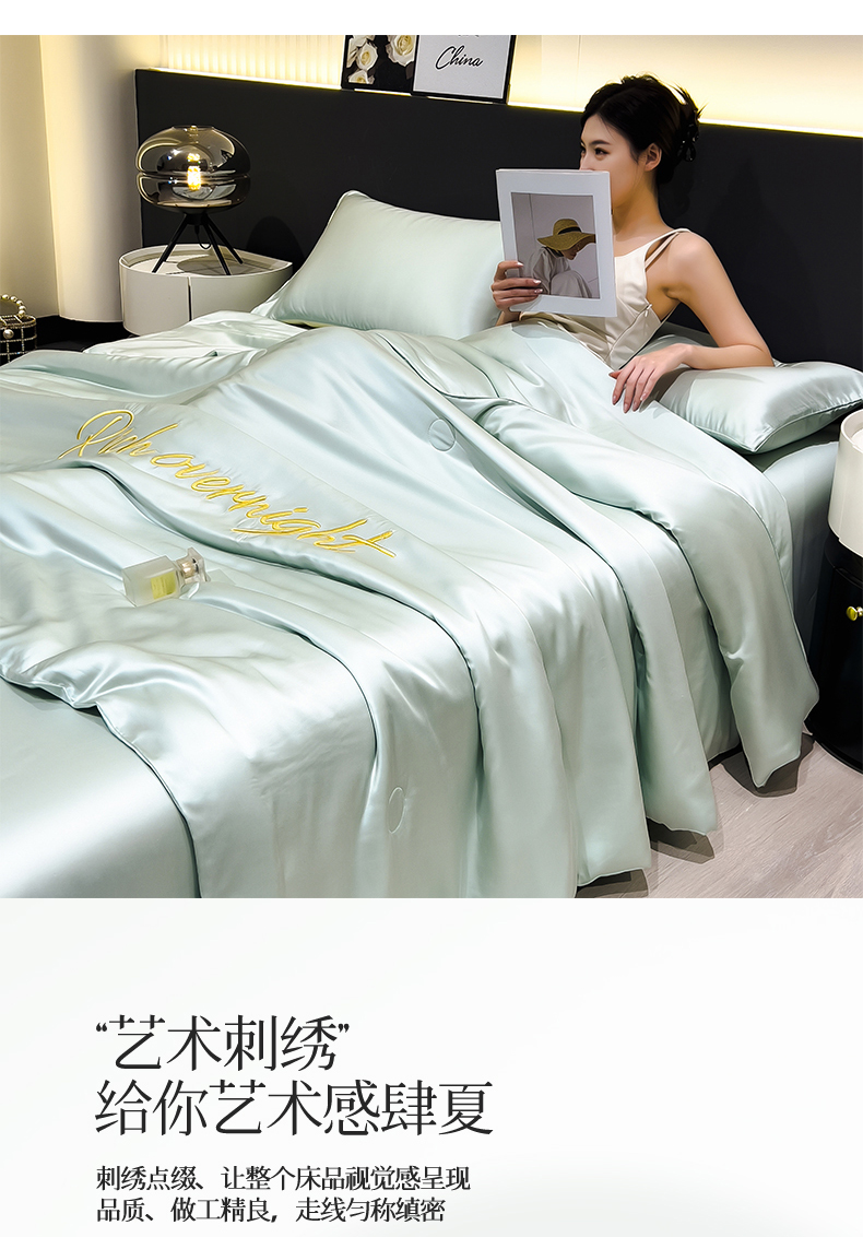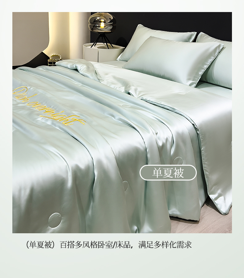 • 91家纺网 家纺一手货源 找家纺 兄弟坊 2026春夏新款水洗冰丝刺绣纯色夏被夏被四件套夏凉被空调被 春芽绿