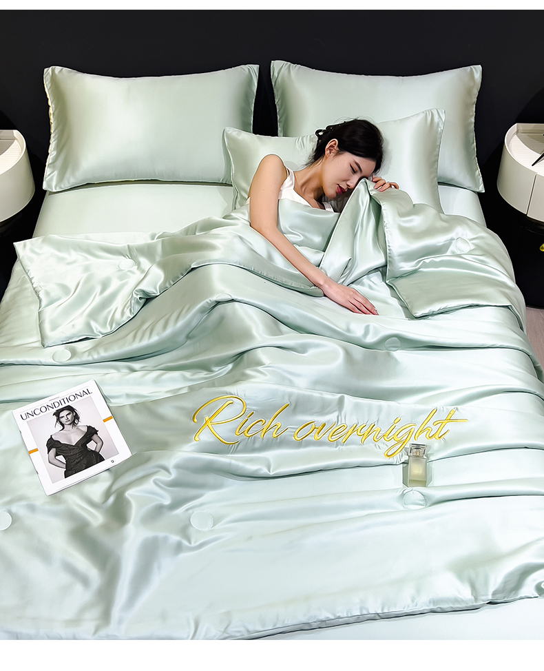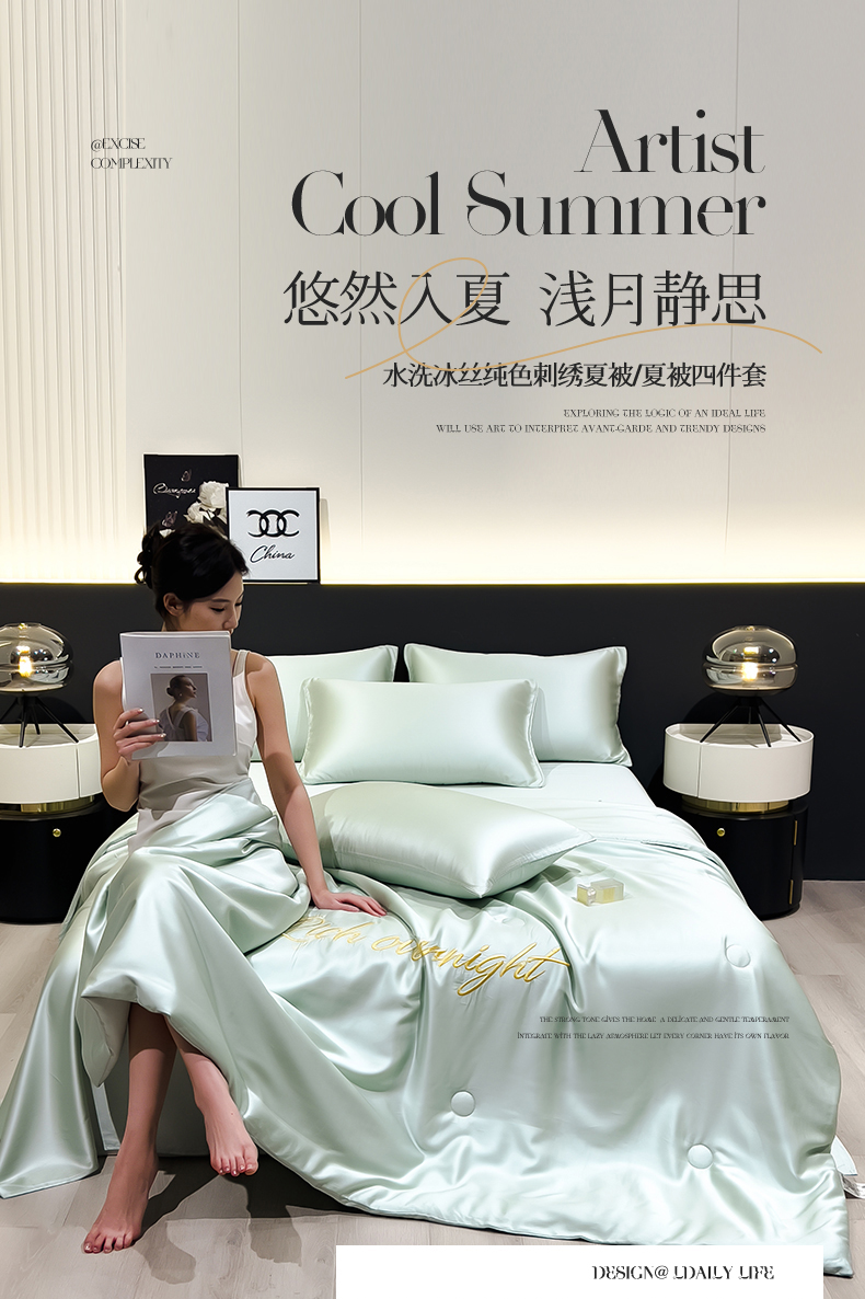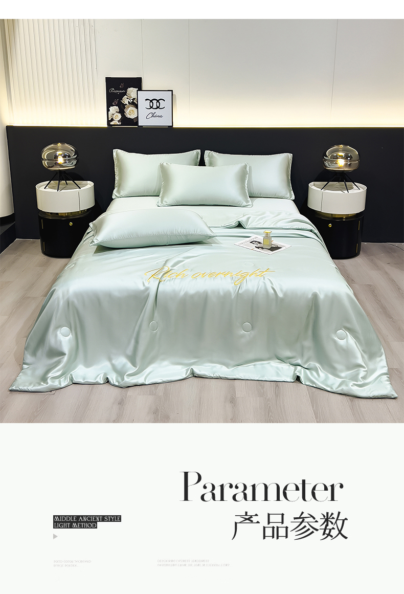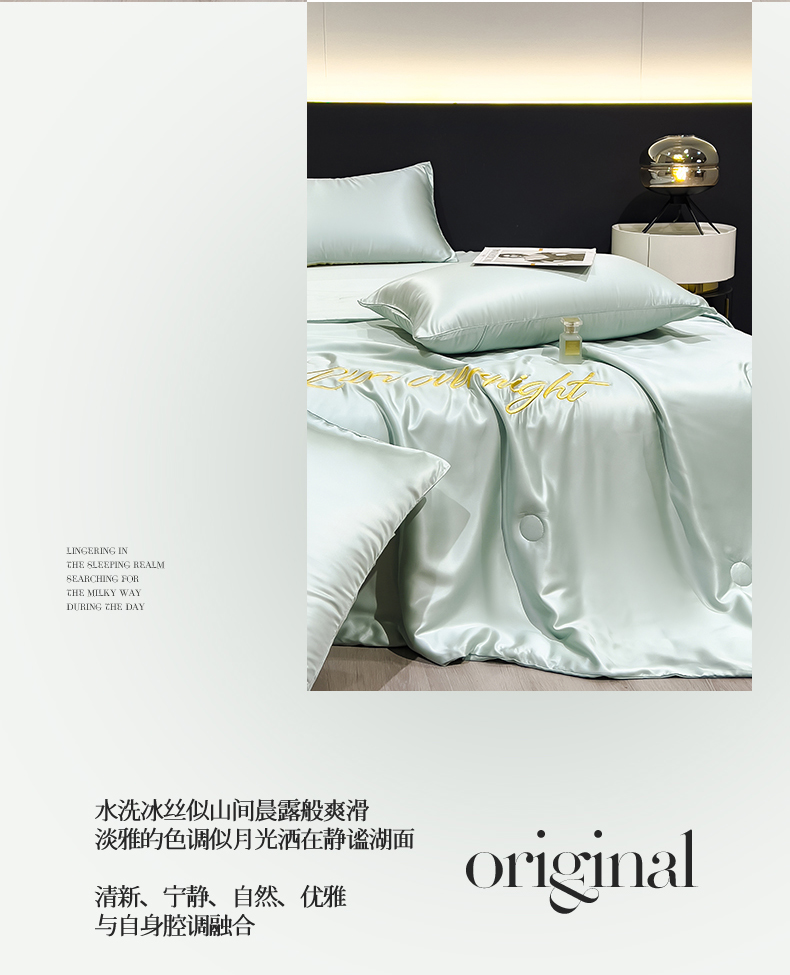• 91家纺网 家纺一手货源 找家纺 兄弟坊 2026春夏新款水洗冰丝刺绣纯色夏被夏被四件套夏凉被空调被 春芽绿