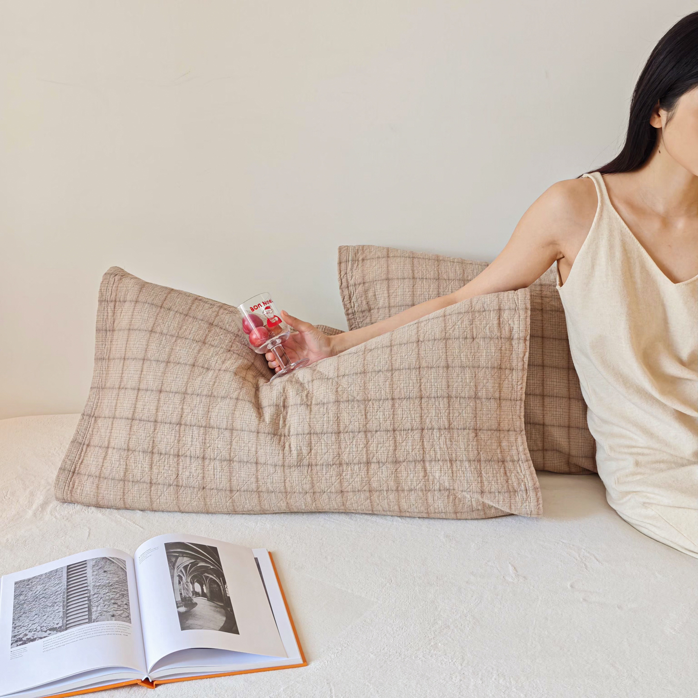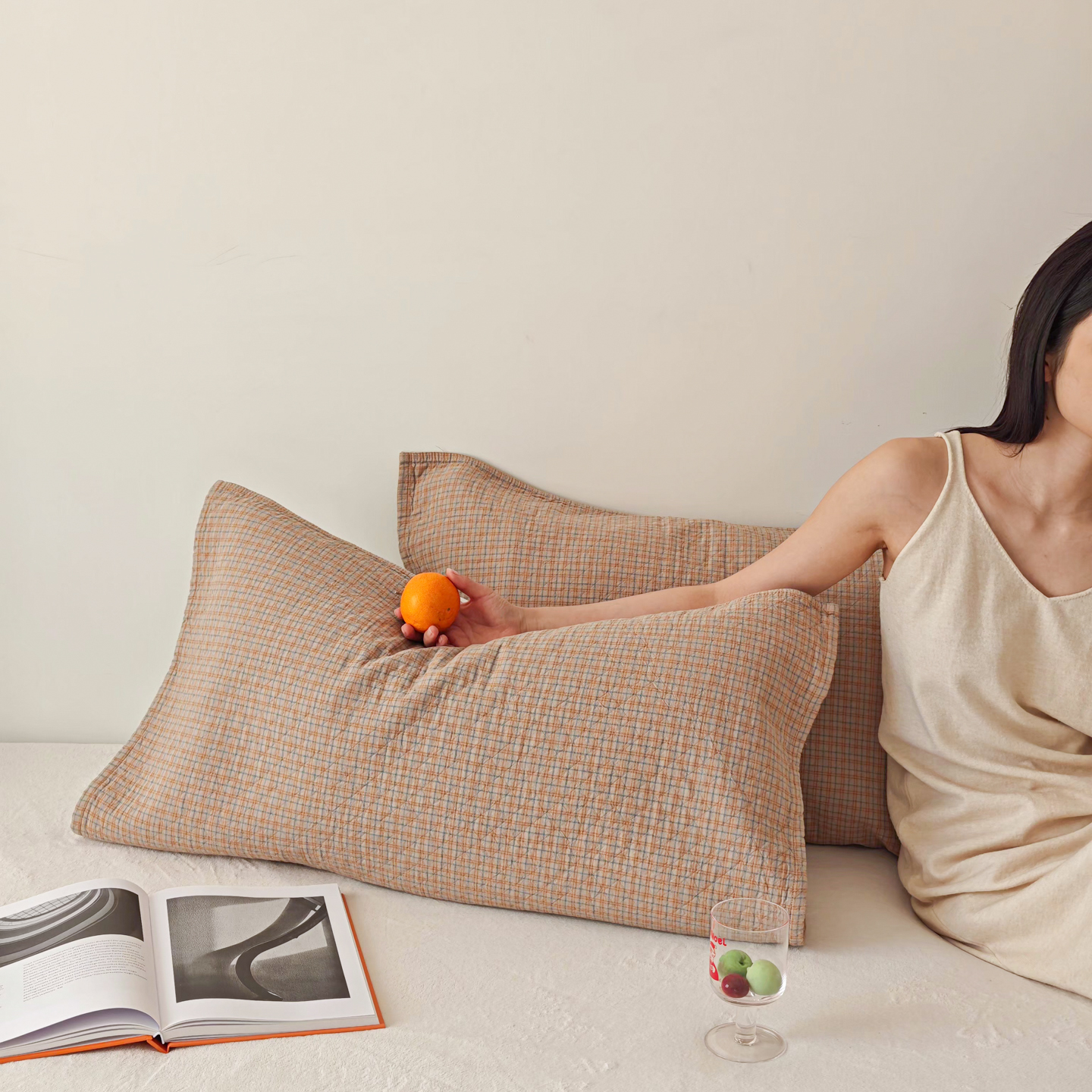 (总)沐瑟家纺 2025新款简约风多功能纱布盖毯纱布毯子毛巾被床盖沙发巾单毯枕巾枕套三件套,H本色,H橙色,H咖色,大马士革本色