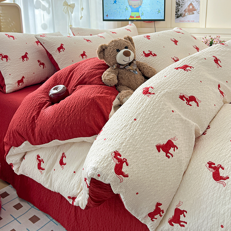 当前位置: 91家纺网 > 商品网购 > 床品套件 > 四件套 > 其它四件套 > 梦纤绒 2026春夏新款简单款泡芙纱印花四件套 欢乐趴