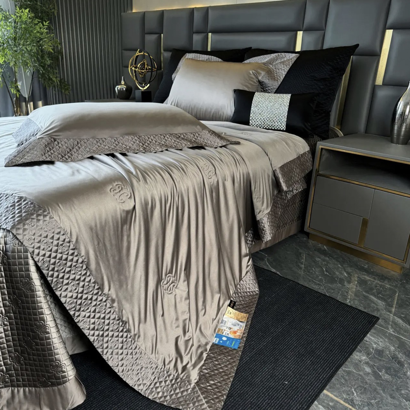 (总)edra 2026新款真丝天丝轻奢提花床盖款四件套-繁花,繁花-深灰,繁花-银灰