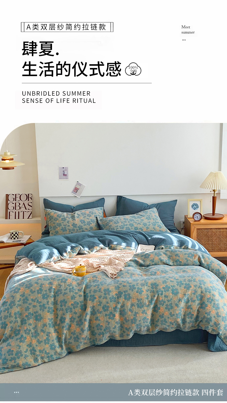 当前位置: 91家纺网 > 商品网购 > 床品套件 > 四件套 > 全棉普通四件套 > 春皖家纺 2026新款全棉纯棉拉链款双层纱四件套 百灵斯顿