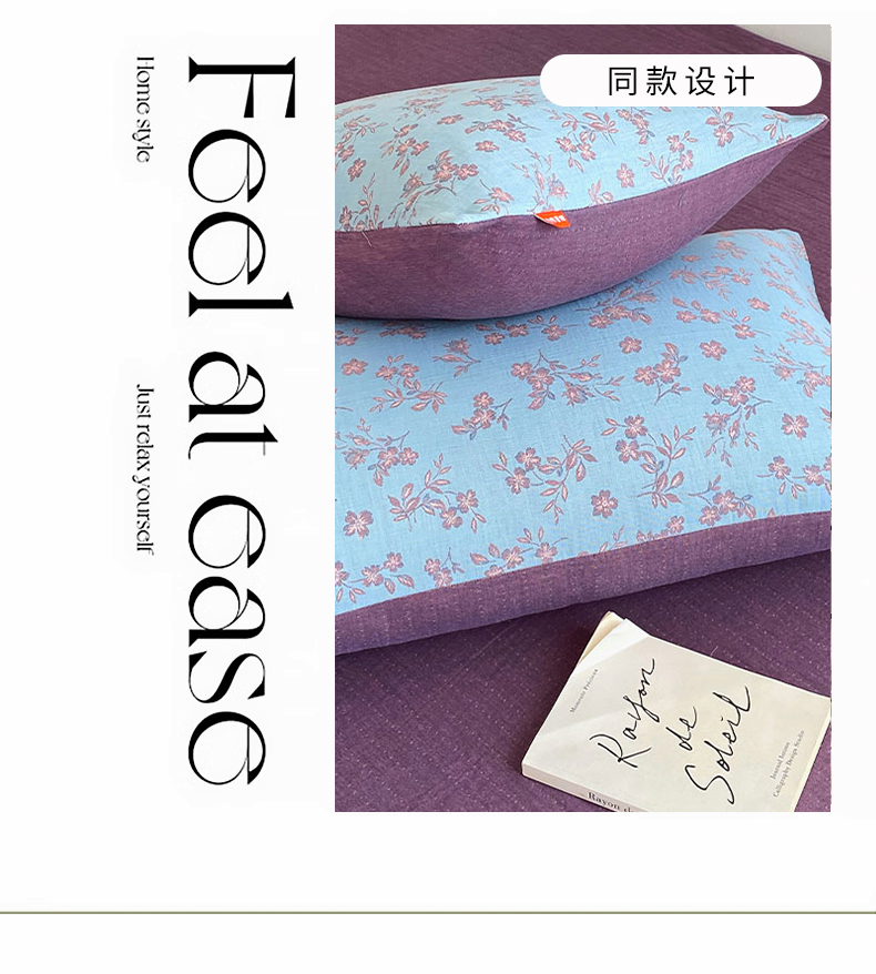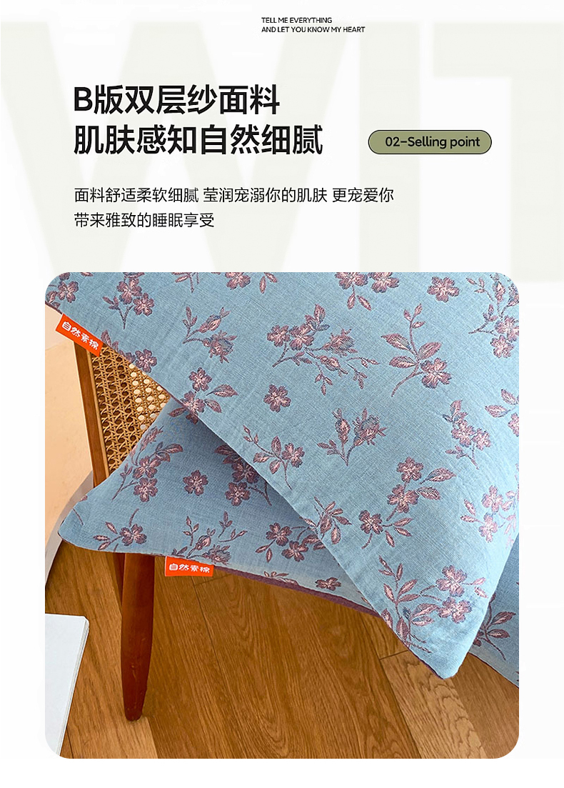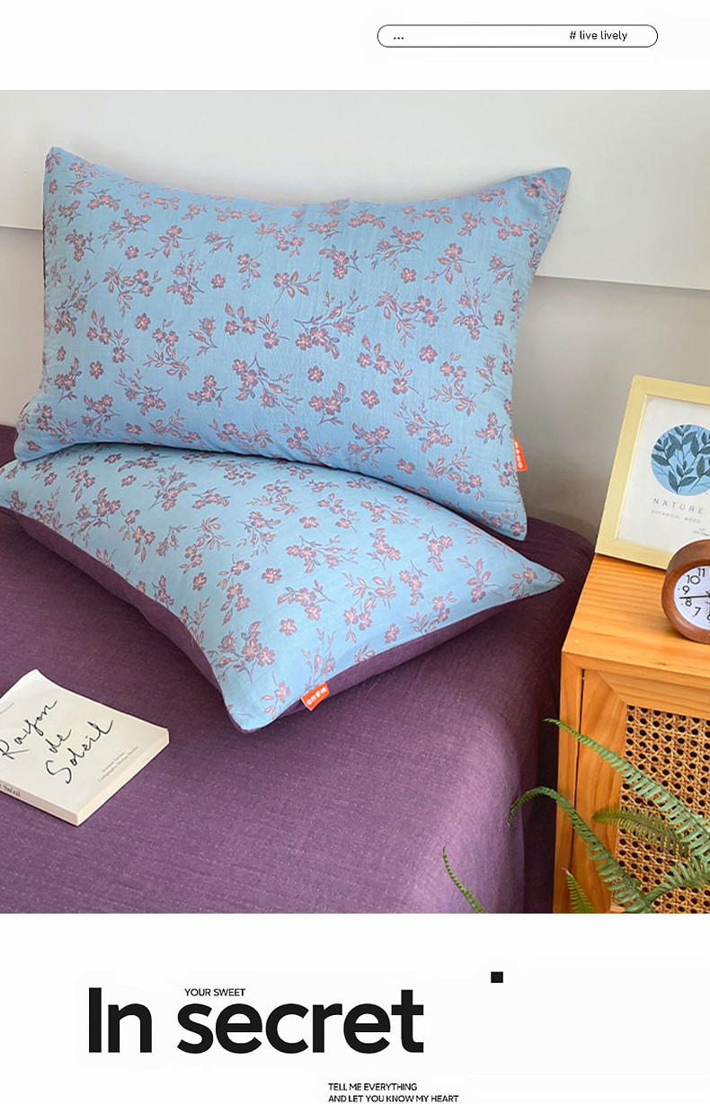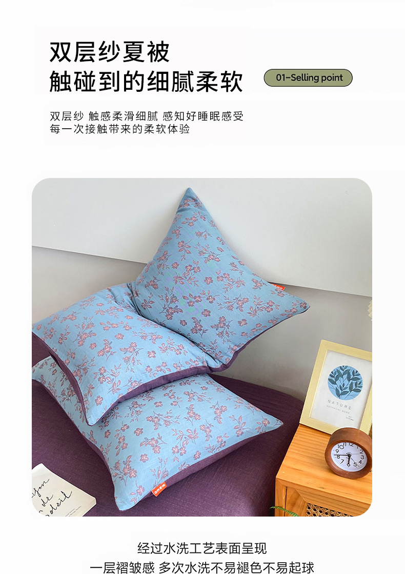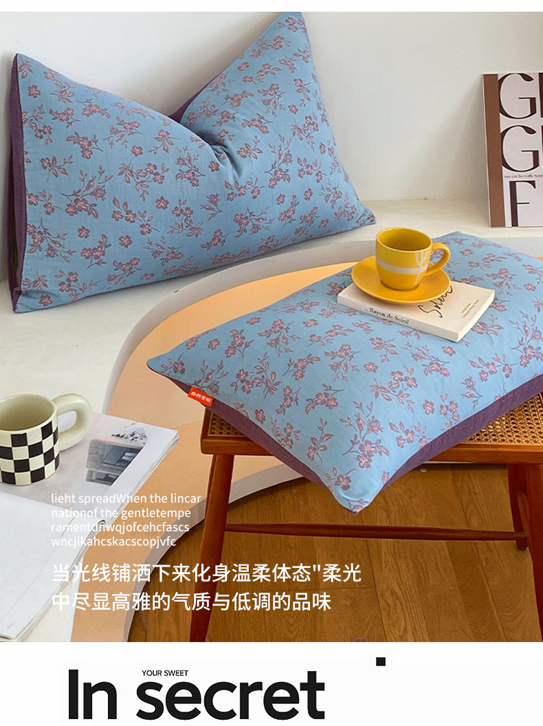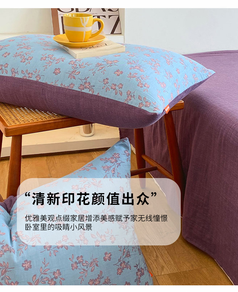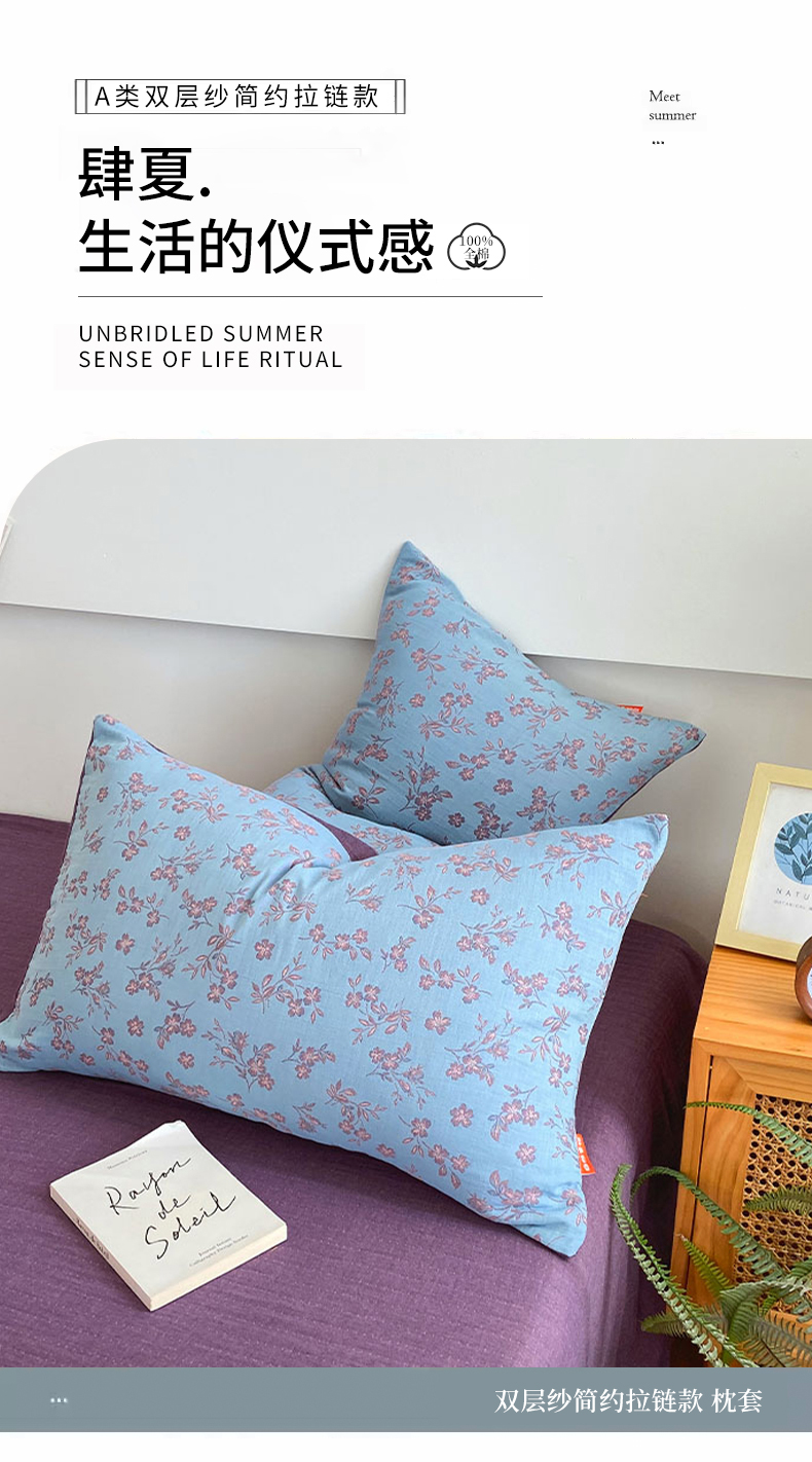 商品名称:春皖家纺 2026新款全棉纯棉拉链款双层纱枕套单枕套枕套单件 花漾兰