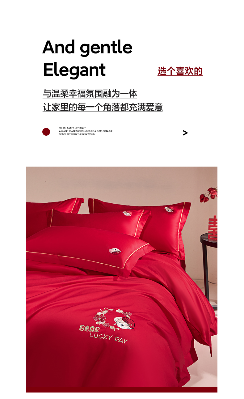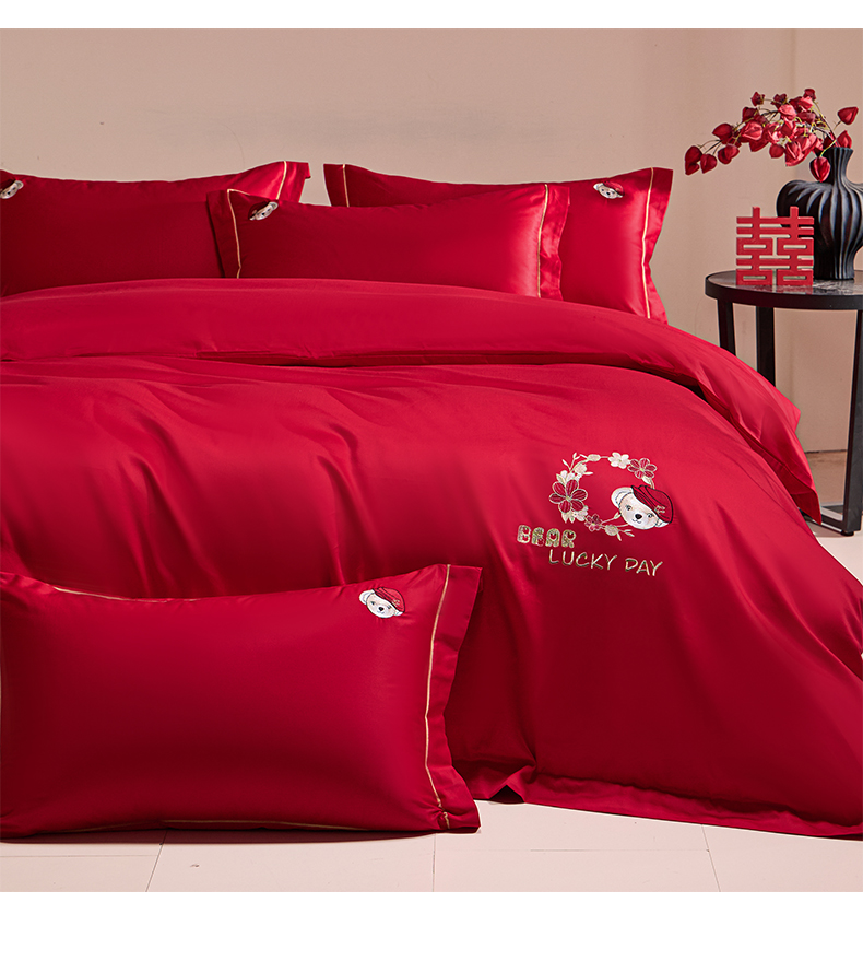 当前位置: 91家纺网 > 商品网购 > 床品套件 > 四件套 > 婚庆四件套 > 欧乐蒂 2026新款亲肤棉简约刺绣婚庆四件套 小熊