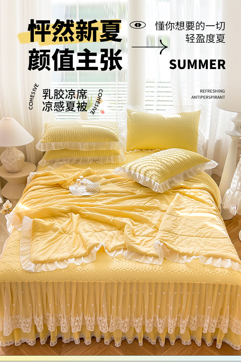 (总)后庭寝室 2026新款冰感豆豆床裙凉席夏被空调被四件套-花语系列,花语-嫩玉,花语-粉色,花语-米色,花语-嫩黄,花语-浅灰,花语-浅蓝,花语-浅紫,花语-水绿