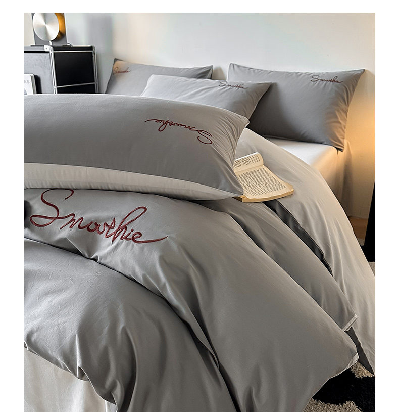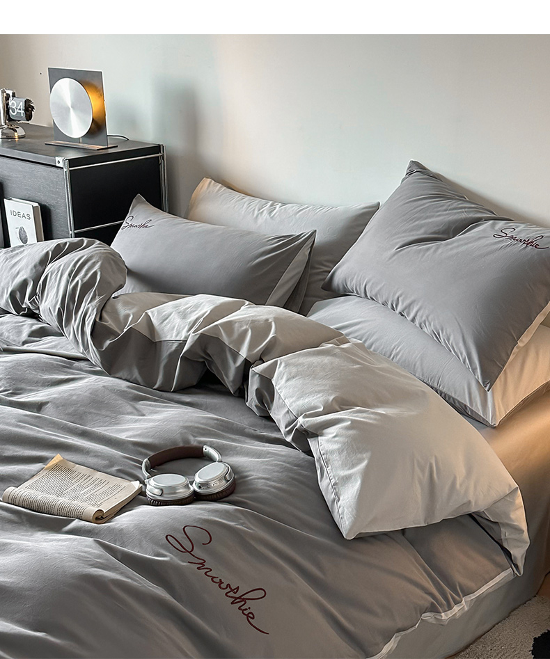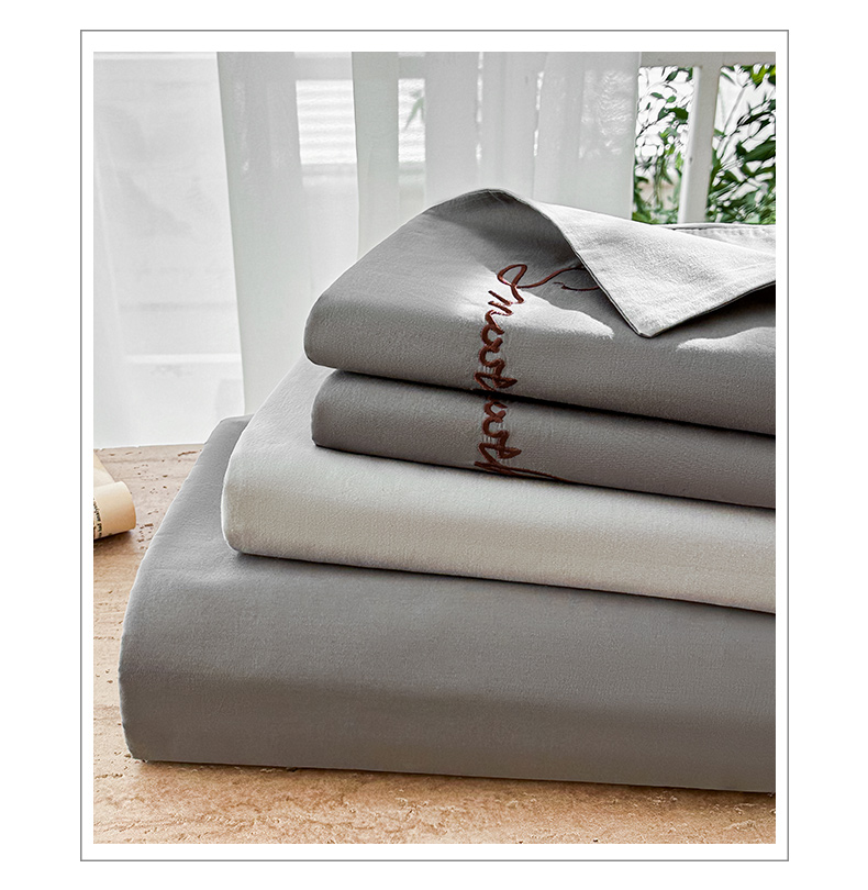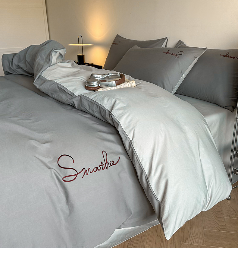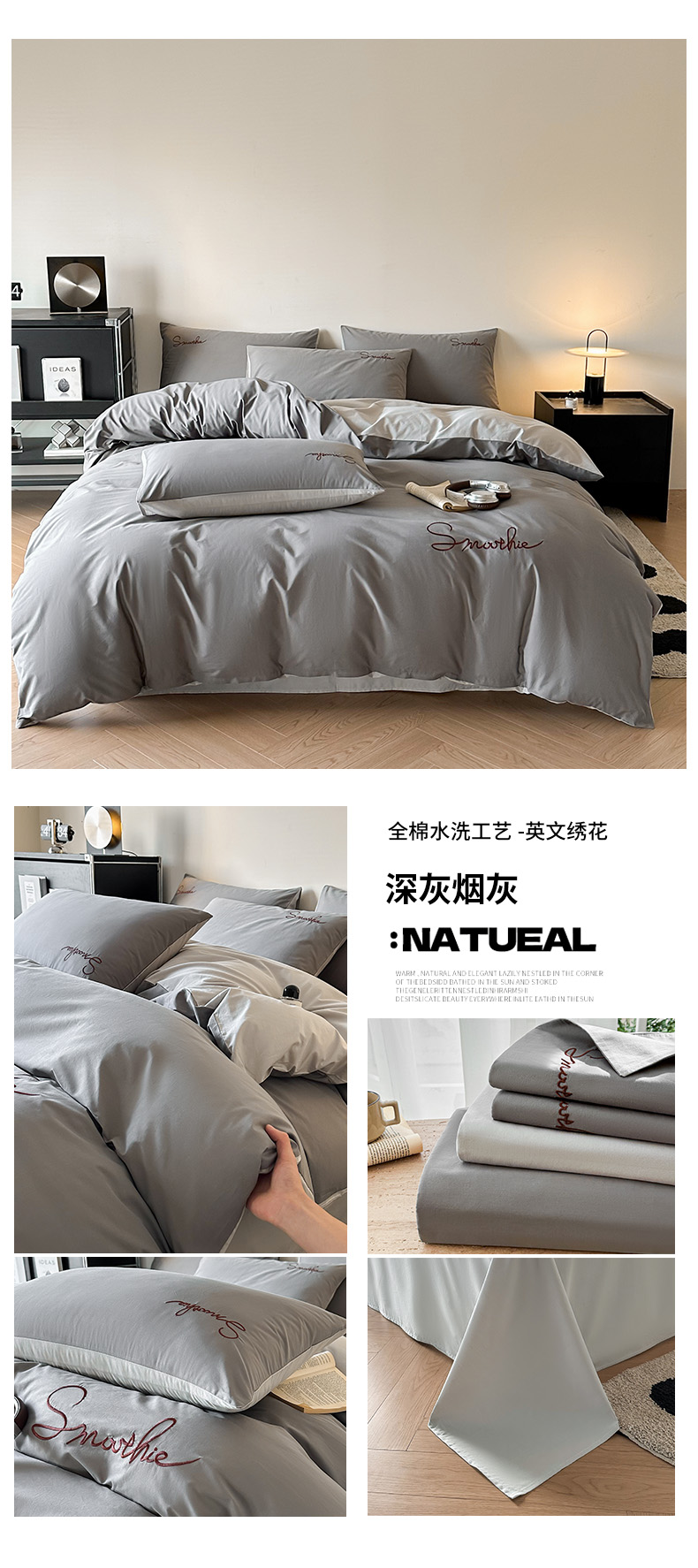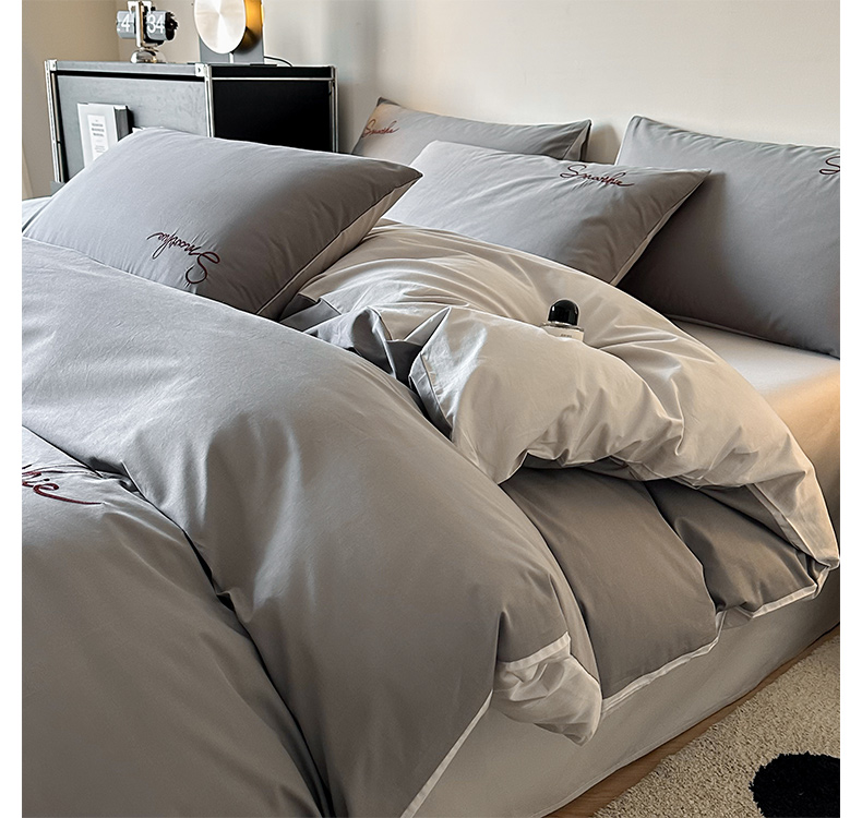当前位置: 91家纺网 > 商品网购 > 床品套件 > 四件套 > 全棉普通四件套 > ab家纺 2026新款刺绣双拼40支全棉水洗四件套 深灰烟灰