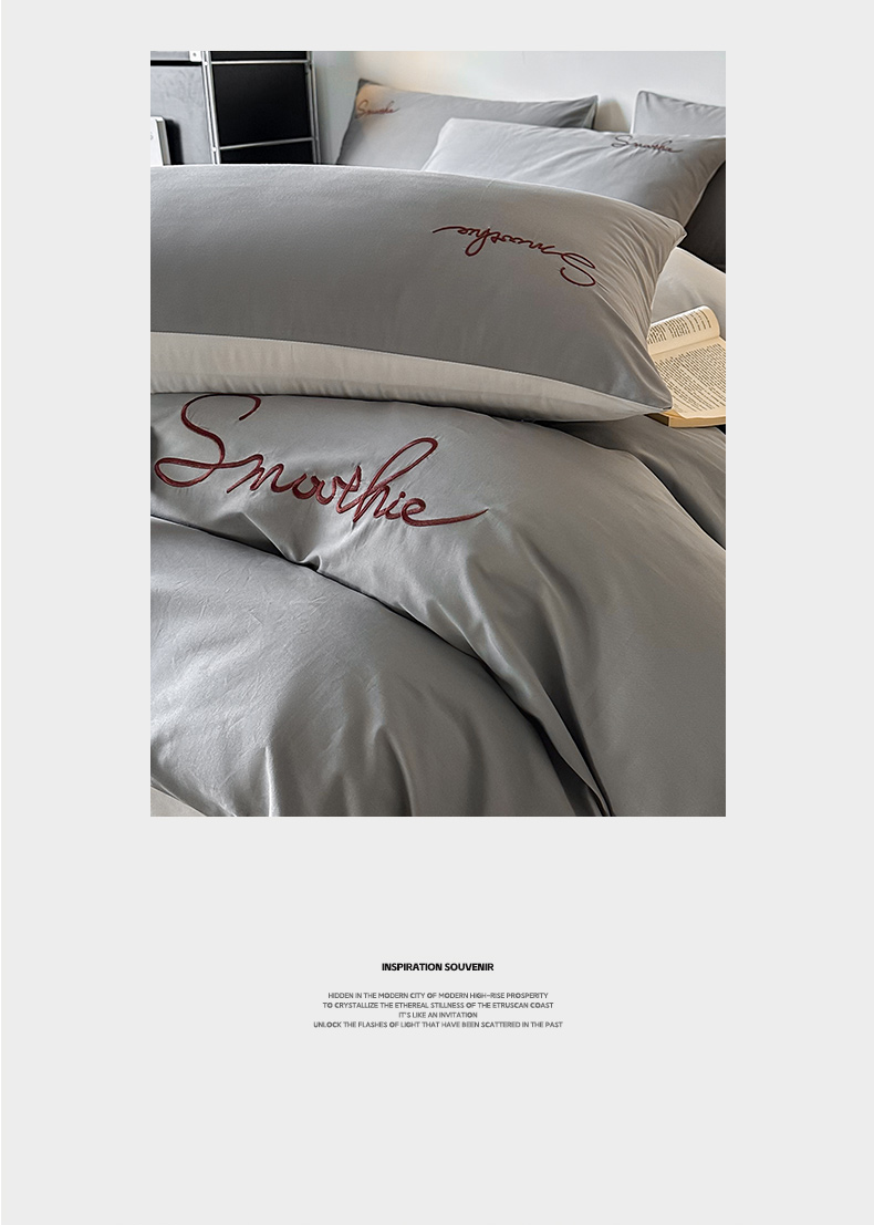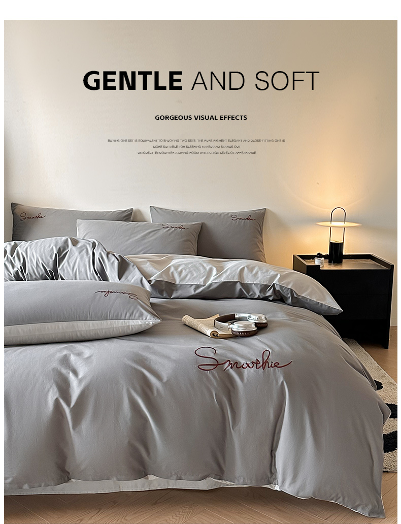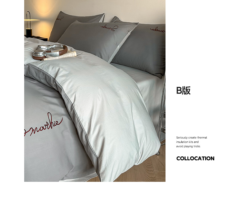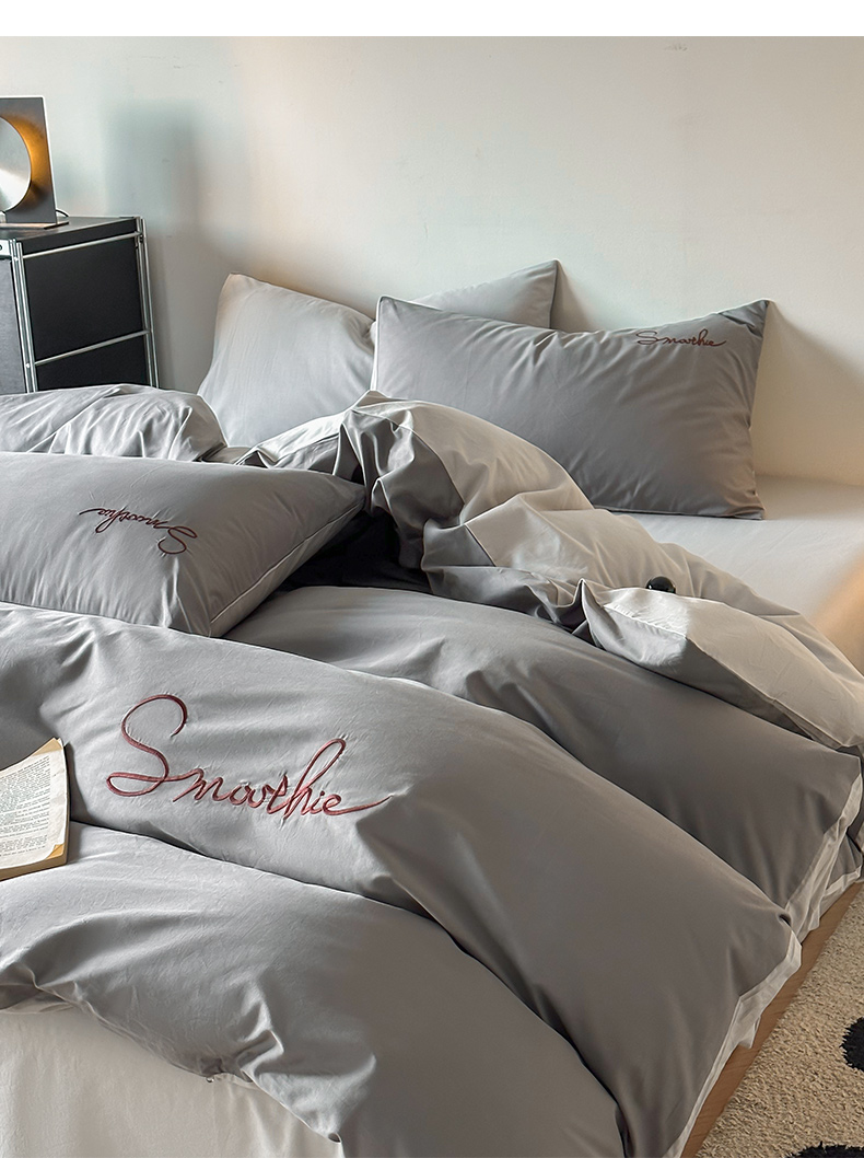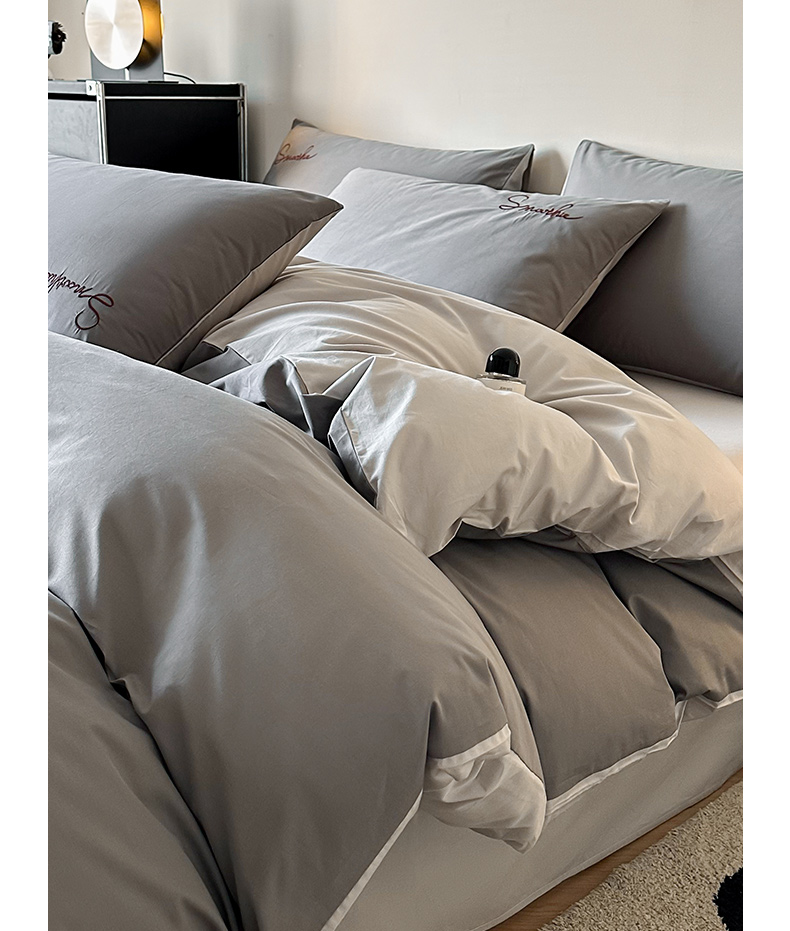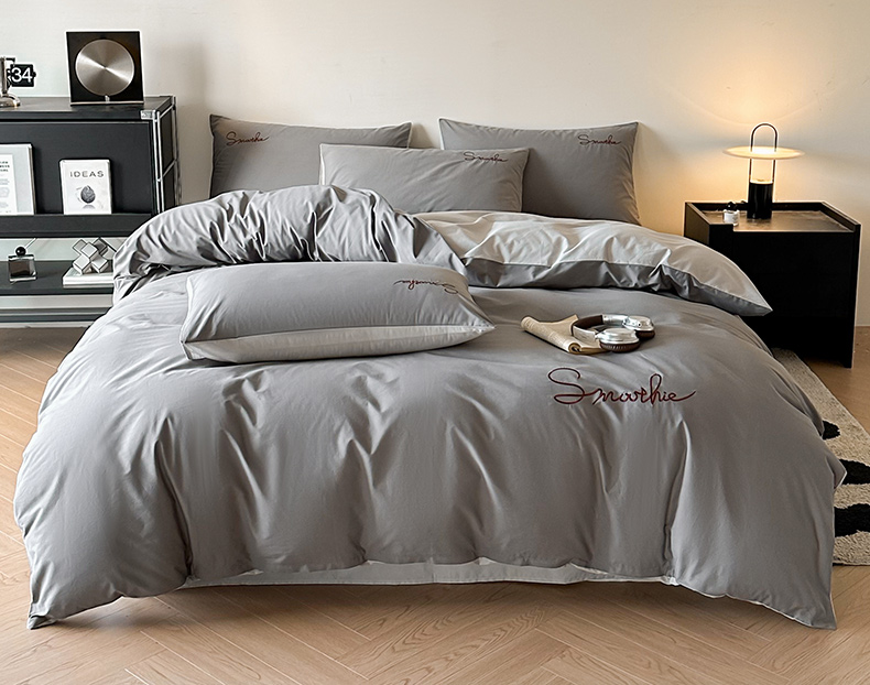 当前位置: 91家纺网 > 商品网购 > 床品套件 > 四件套 > 全棉普通四件套 > ab家纺 2026新款刺绣双拼40支全棉水洗四件套 深灰烟灰