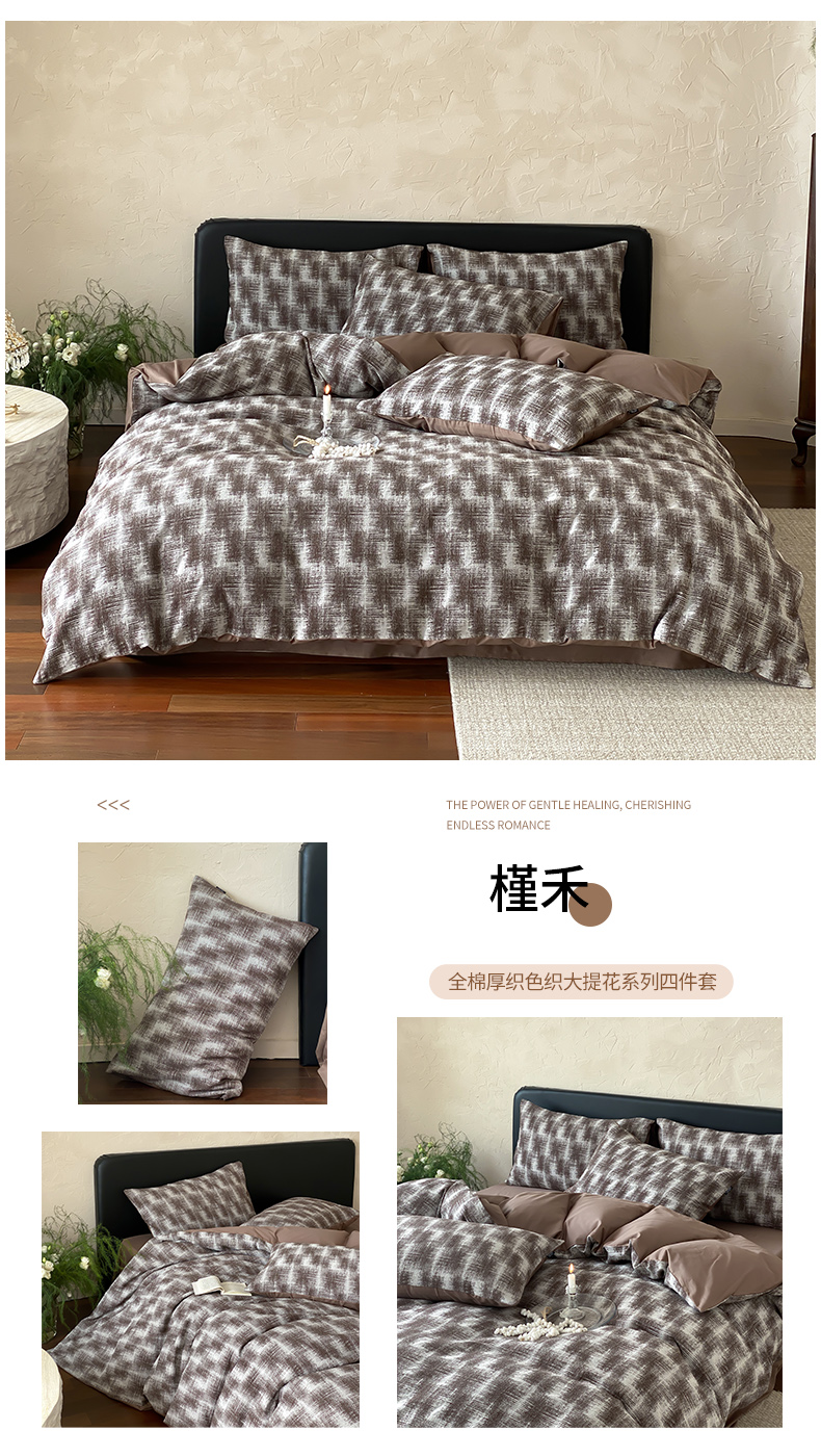 (总)宜代光年 2026新款全棉厚织色织大提花四件套系列,千纹,滴落游花,格格,怀澈,槿禾,甜策