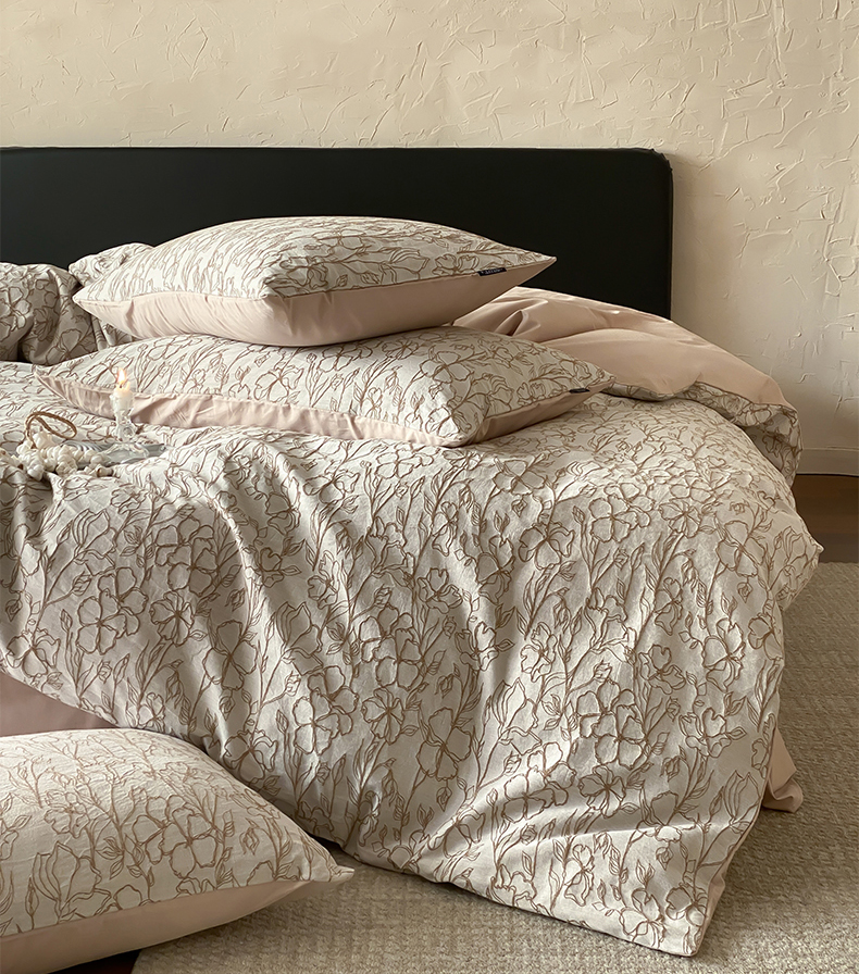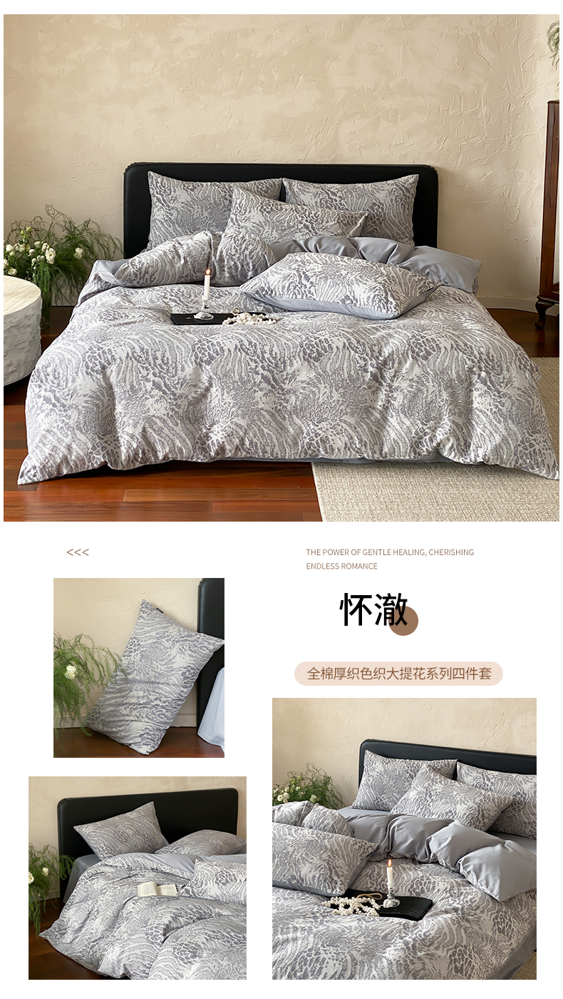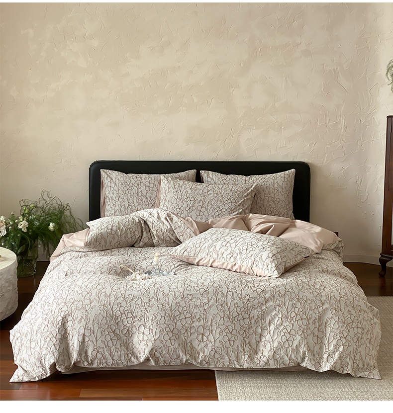 (总)宜代光年 2026新款亚麻大提花贡缎磨毛四件套系列 侘寂风花型系列,斑驳-米麻,观花芷-米麻,观花芷-银灰,清玉絮-葡萄紫,清玉絮-鲜蓝,素简