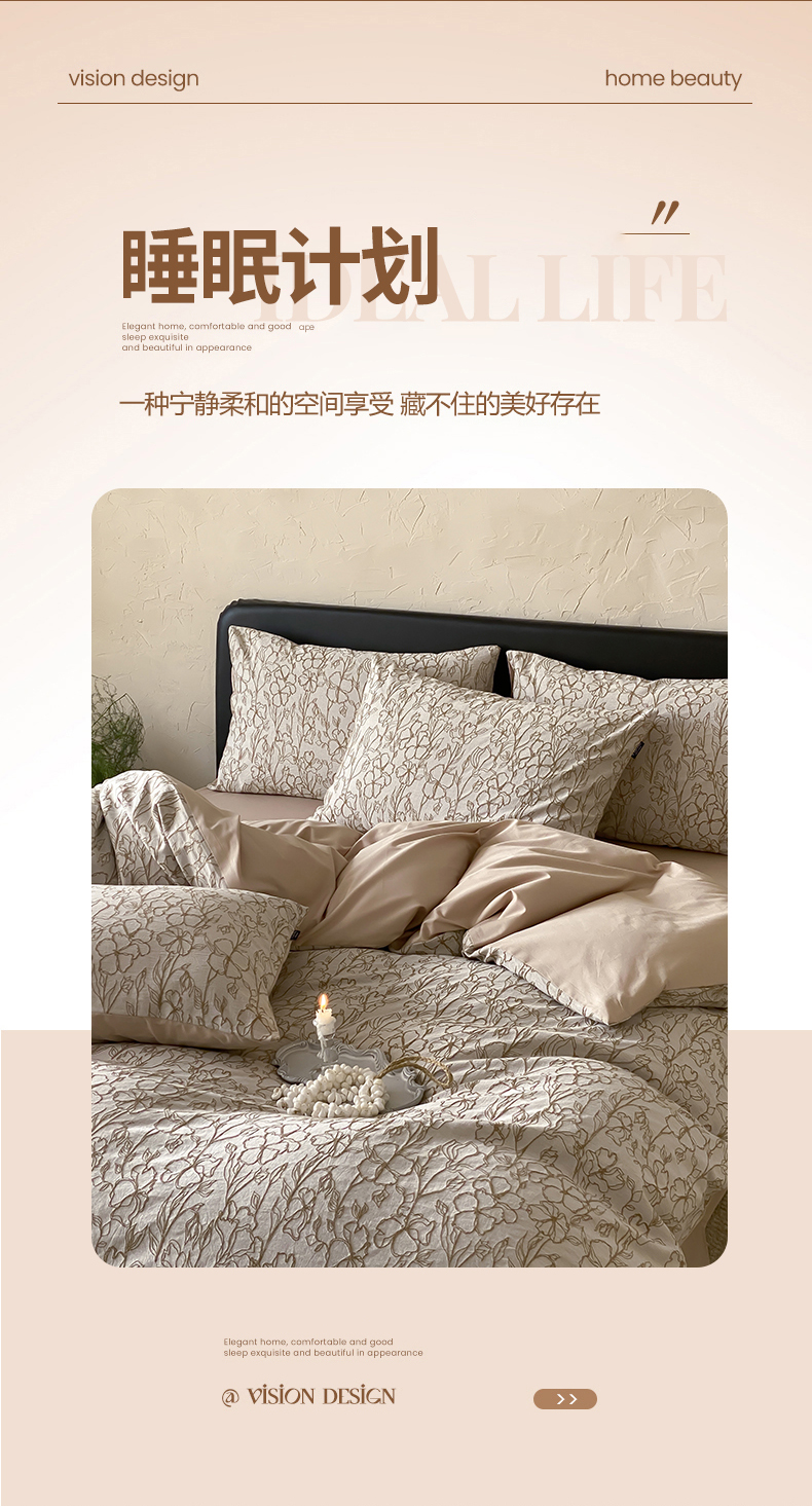 (总)宜代光年 2026年新款全棉厚织提花四件套系列(第一批花型)极有家花型,暗香疏影-奶白,蝶梦悠悠-浅粉,花影-奶白,律光-深咖,蜜语,西塔-深咖,小郁葱-浅绿,雨迢迢-深咖