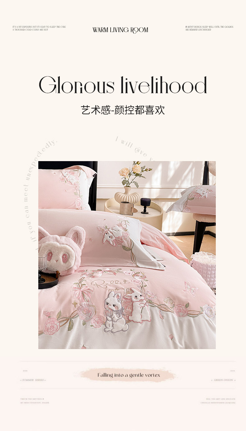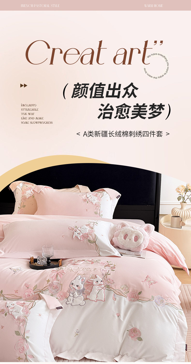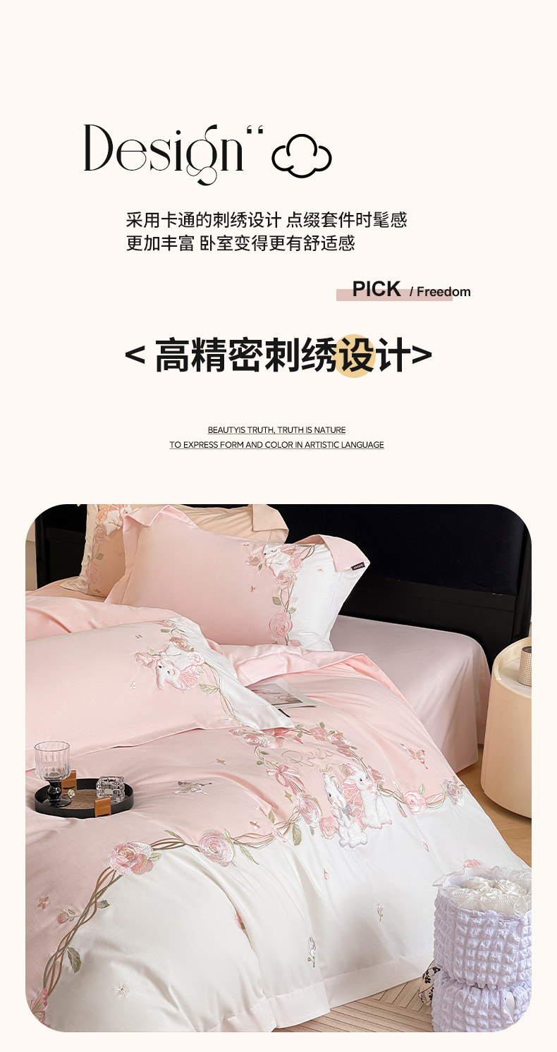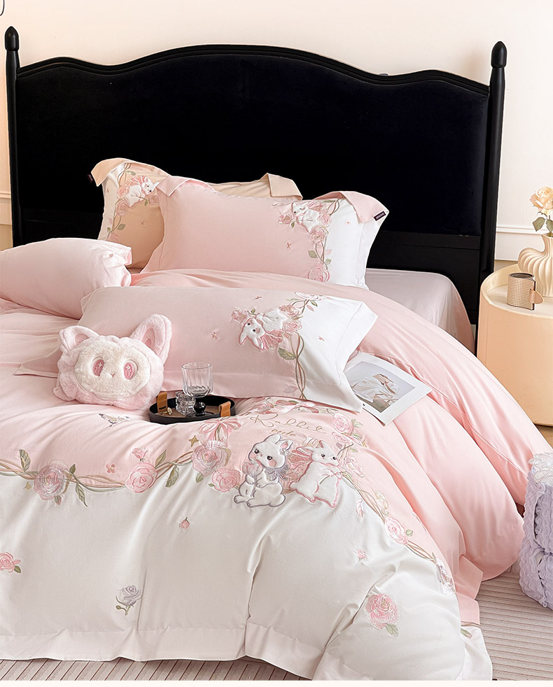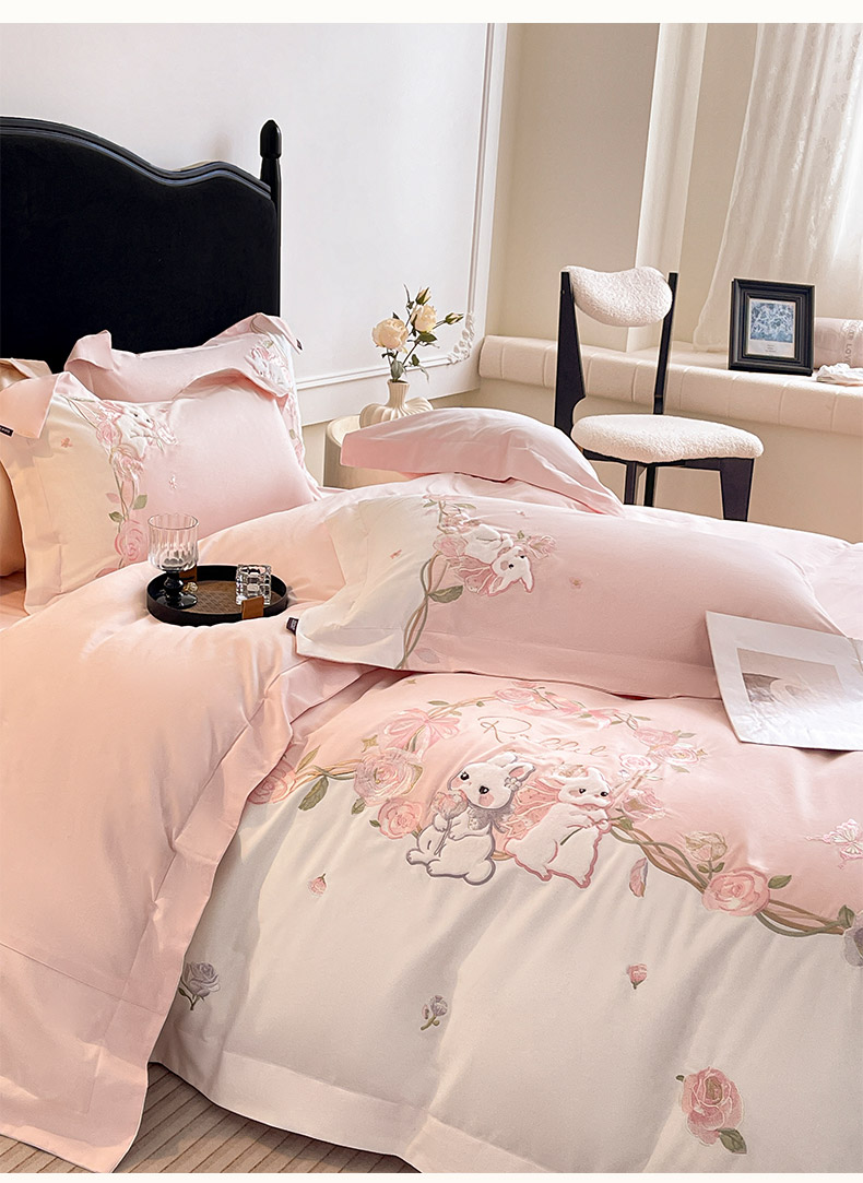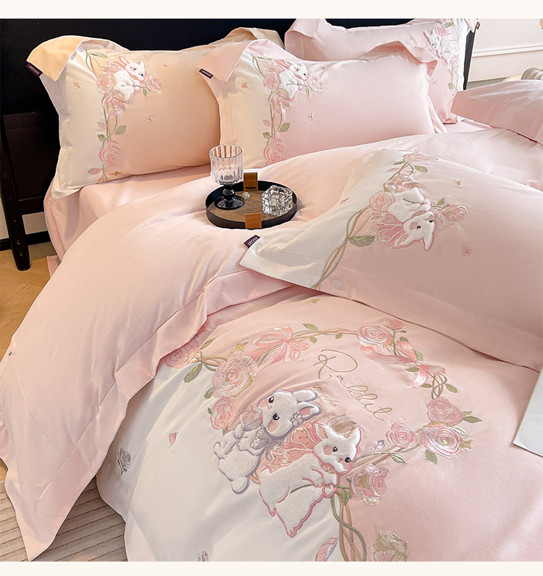 当前位置: 91家纺网 > 商品网购 > 床品套件 > 四件套 > 全棉普通四件套 > 乔利卡沃 2026爆款新品少女心A类100支长绒棉纯棉四件套全棉刺绣兔子被套床单床笠公主风 月汐兔-颜粉
