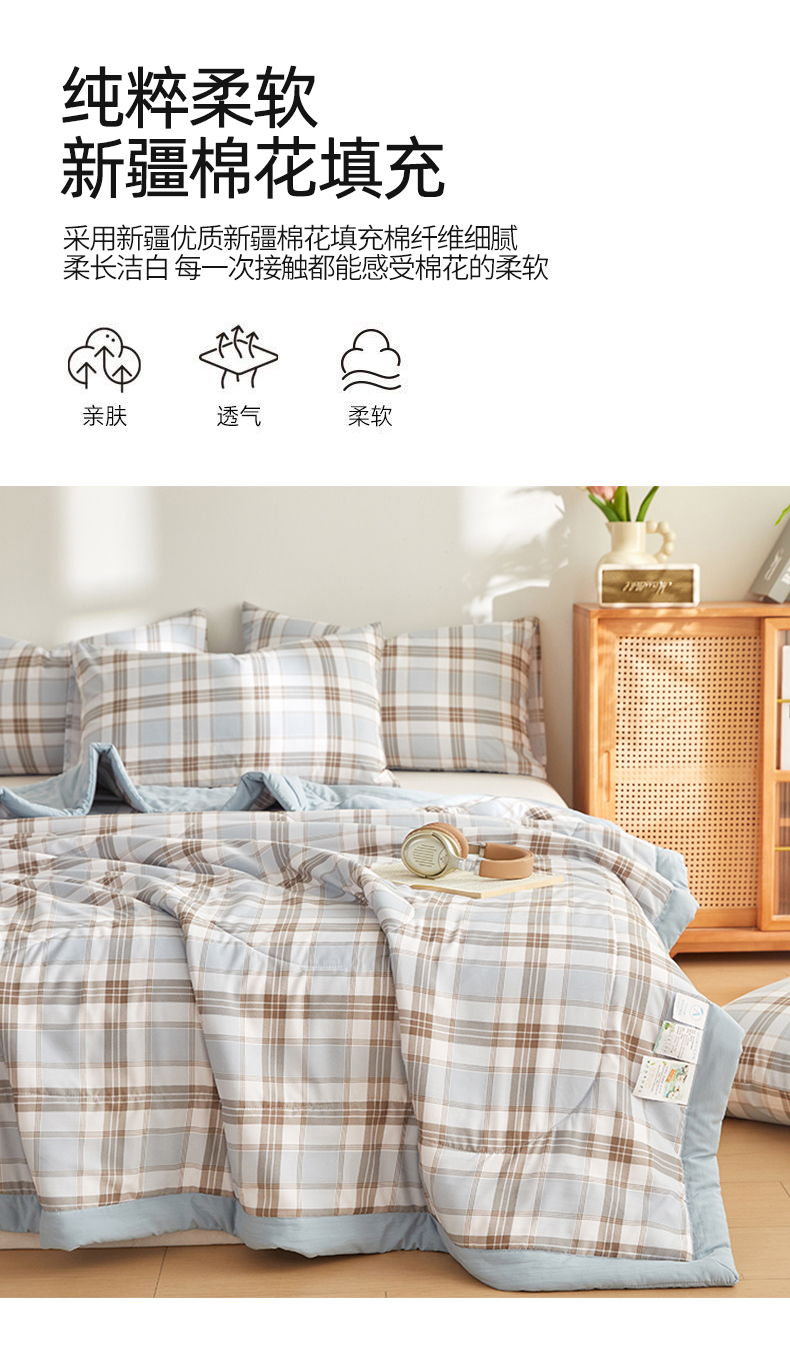 (总)海洋家纺2026新款100%里外全棉夏被格子空调被夏凉被薄被子棉花夏被四件套-风格一,柏拉图 蓝,宝利格 绿,伯克利,格瑞斯,格韵空间,几何空间,菱形格 灰,菱形格 蓝,莫兰迪,时光 格,休闲时光,学院派,雅格 灰,英伦风范,致青春,格调 兰