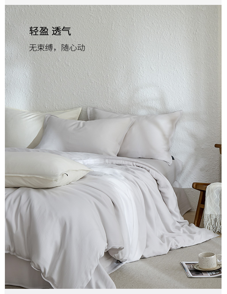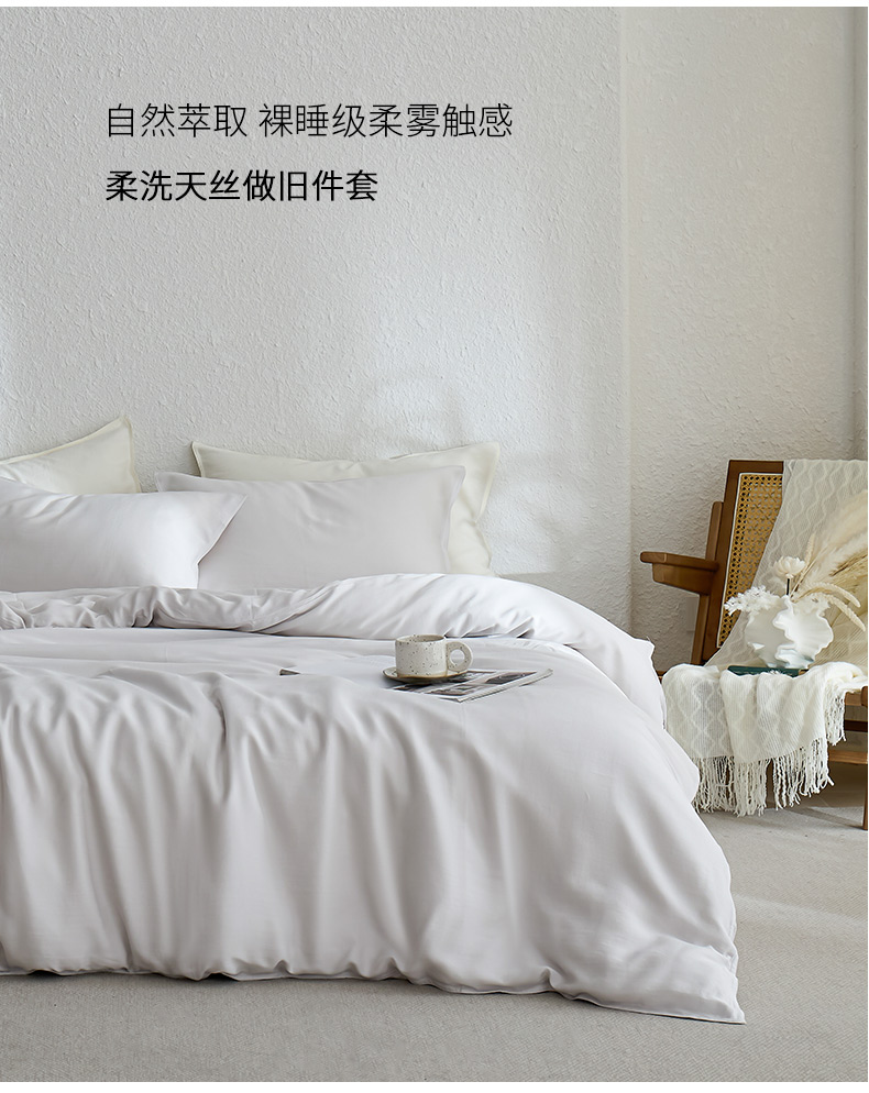 禧禾 2026新款60支兰精天丝柔洗做旧四件套序禾 序禾-浅云灰