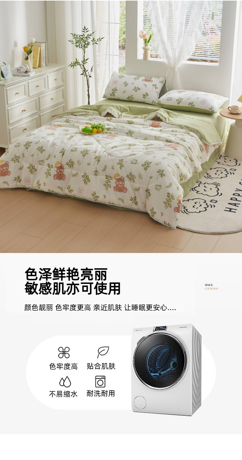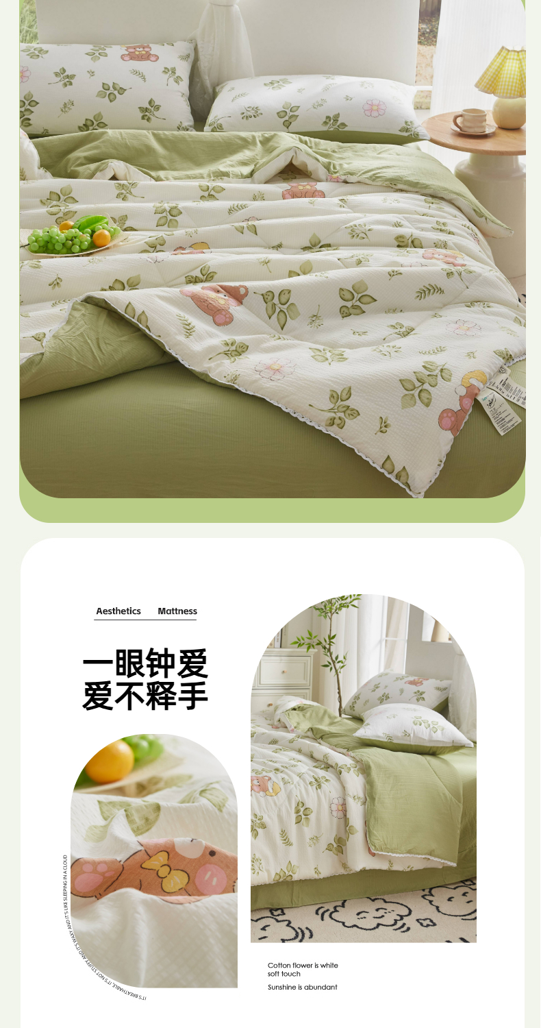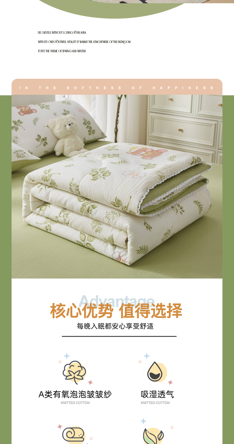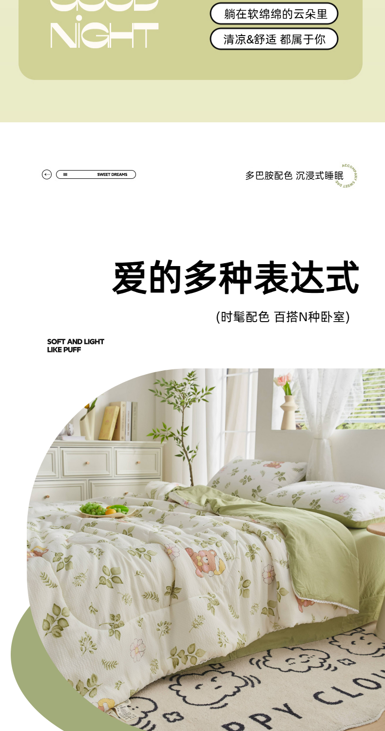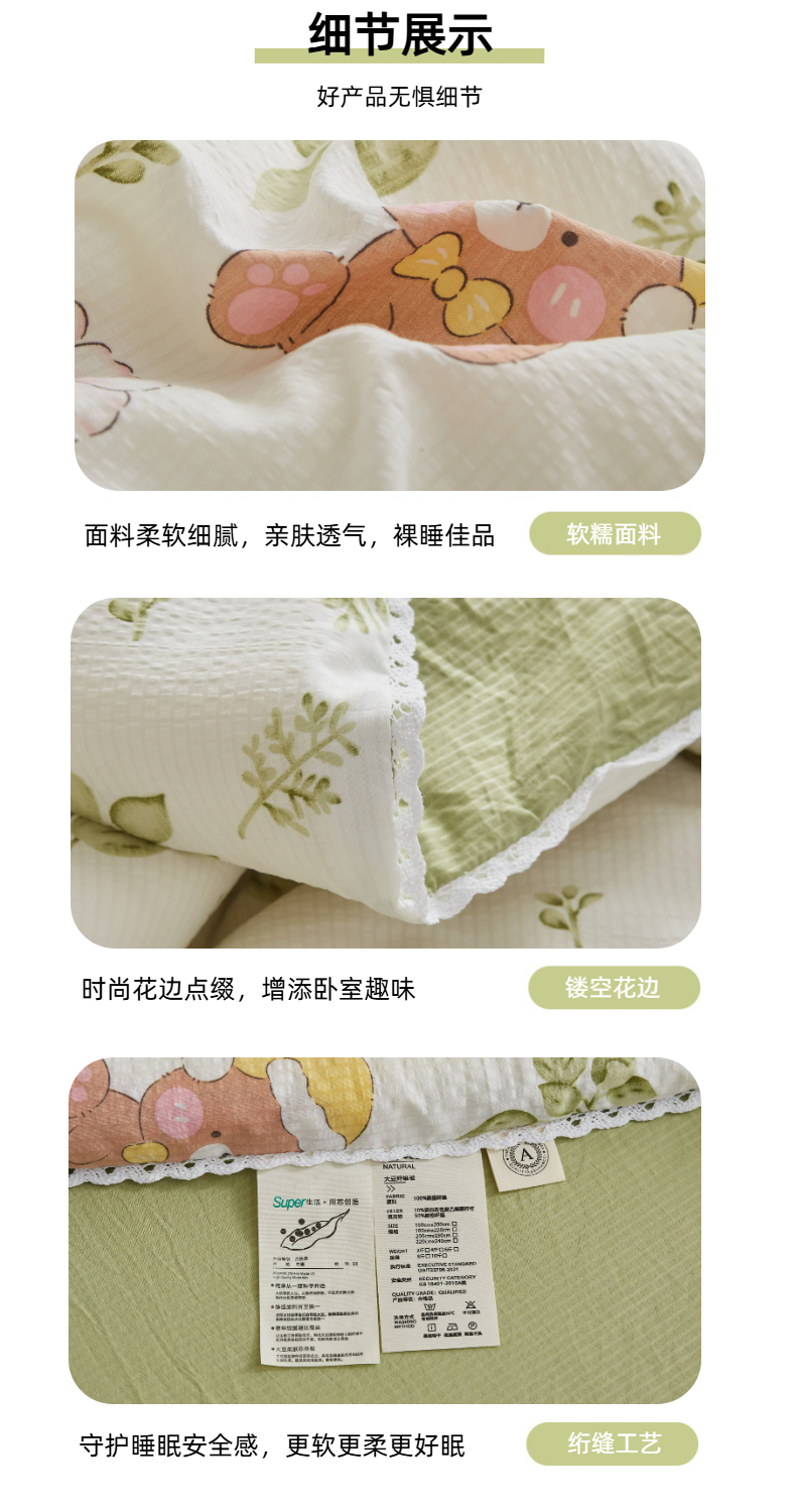 (总)帕芬鸟家纺 2026春夏新款双层皱皱纱水洗棉大豆夏被夏凉被空调被,爱心樱桃,花海,花间蜜语,花间小熊,花漾,恐龙谷,莓果森林,森林兔,晚安熊,小确幸