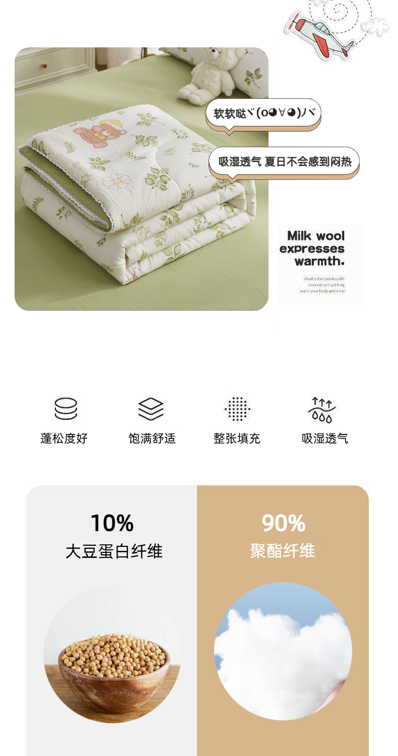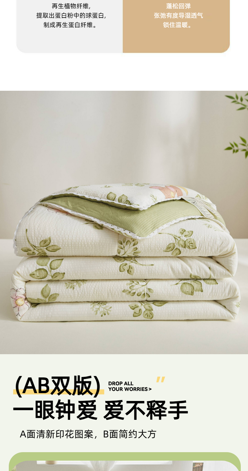 (总)帕芬鸟家纺 2025新款超柔水洗棉大豆被子被芯,米白拼绿,灰色,米白色,玉色,咖色