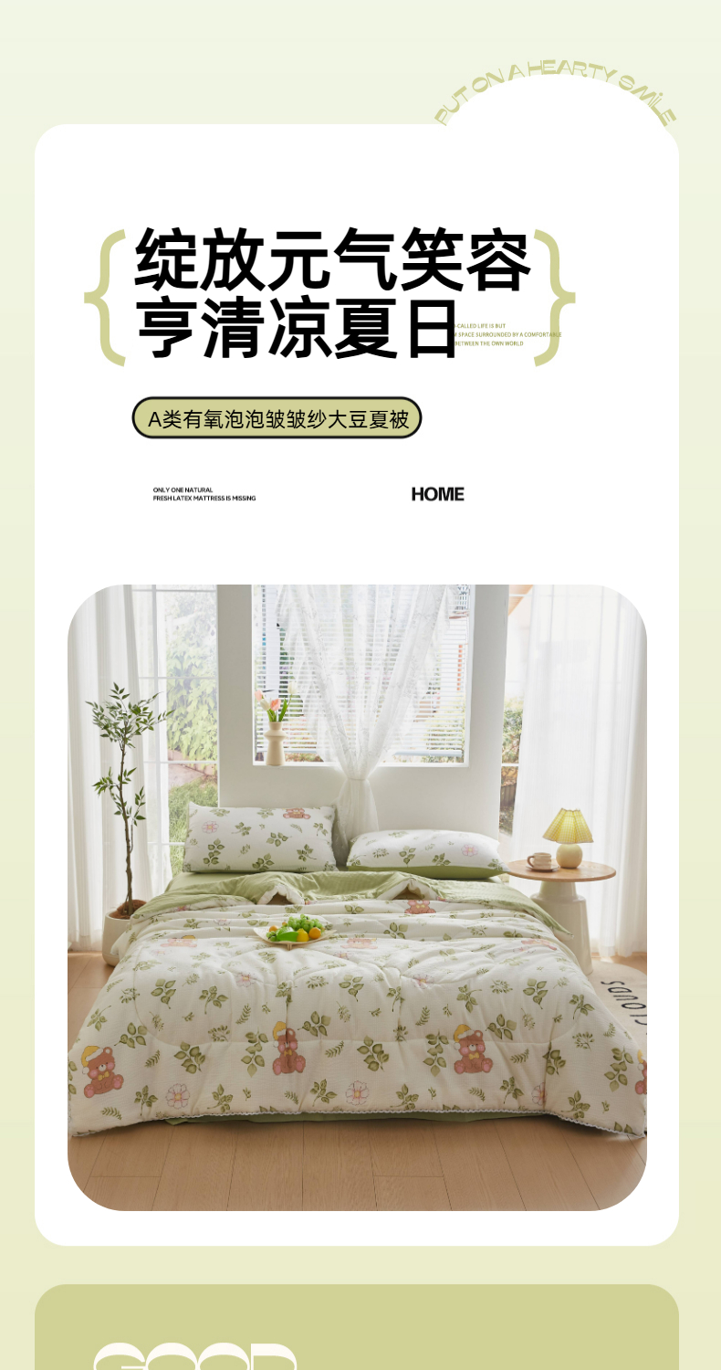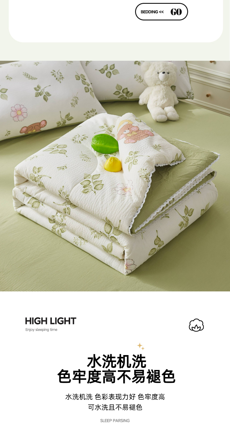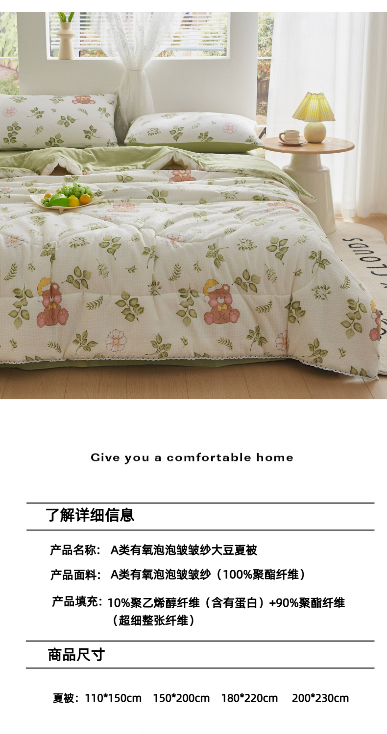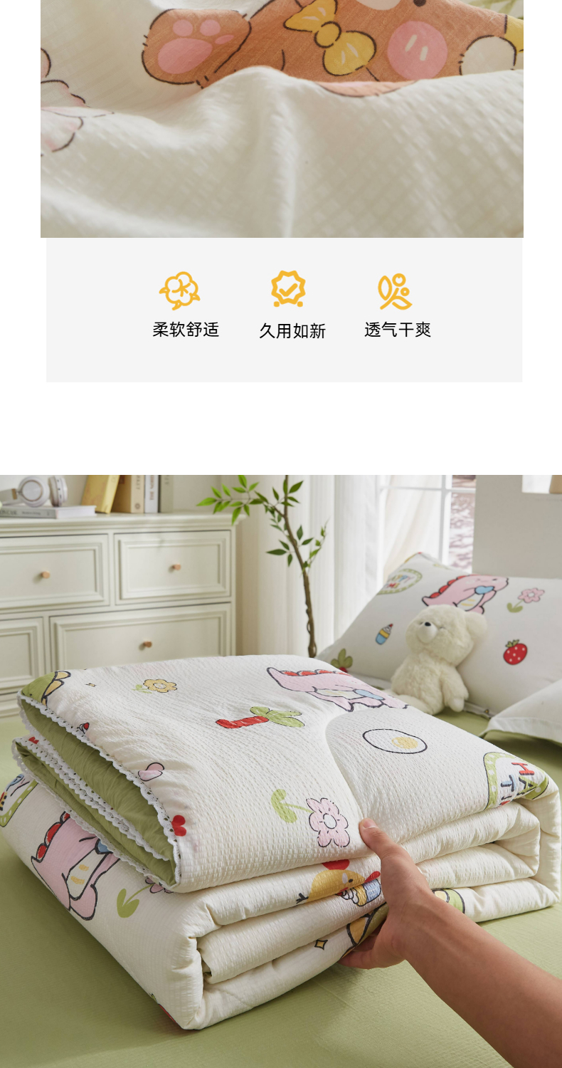 商品名称:帕芬鸟家纺 2026春夏新款双层皱皱纱水洗棉大豆夏被夏凉被空调被 晚安熊