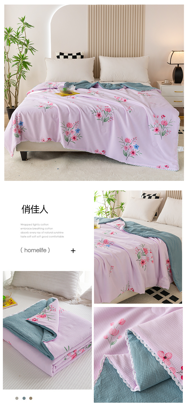 (总)帕芬鸟家纺 2026新款凉感丝夏被高支高密凉感丝夏被排湿透气凉感丝西瓜夏被,凉凉西瓜-绿配红,冰淇淋-紫配蓝,清新柠檬-黄配灰,夏日蜜瓜-浅绿配粉