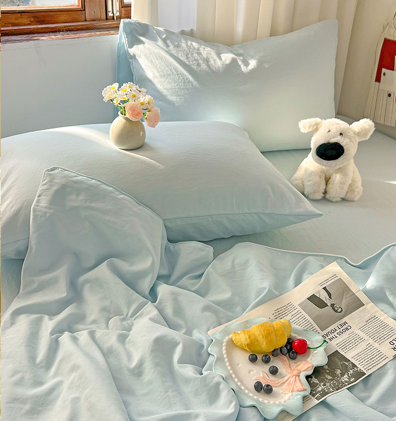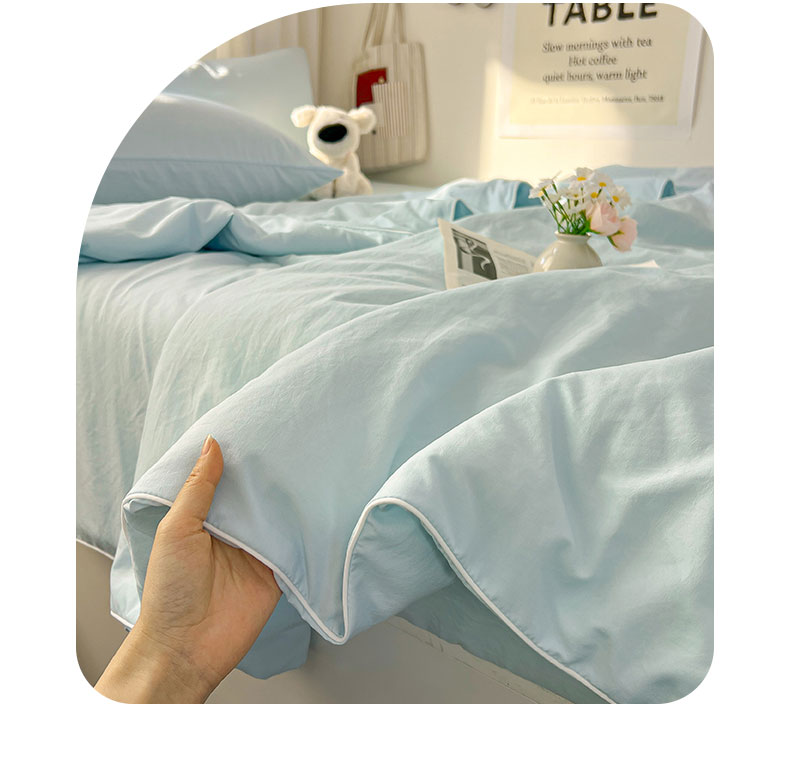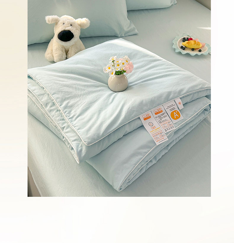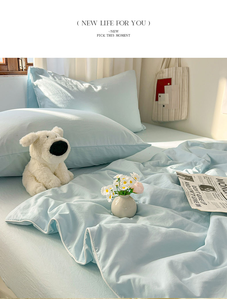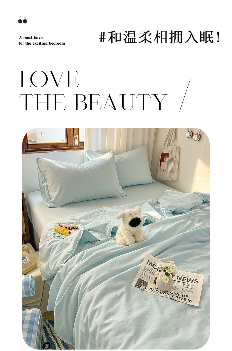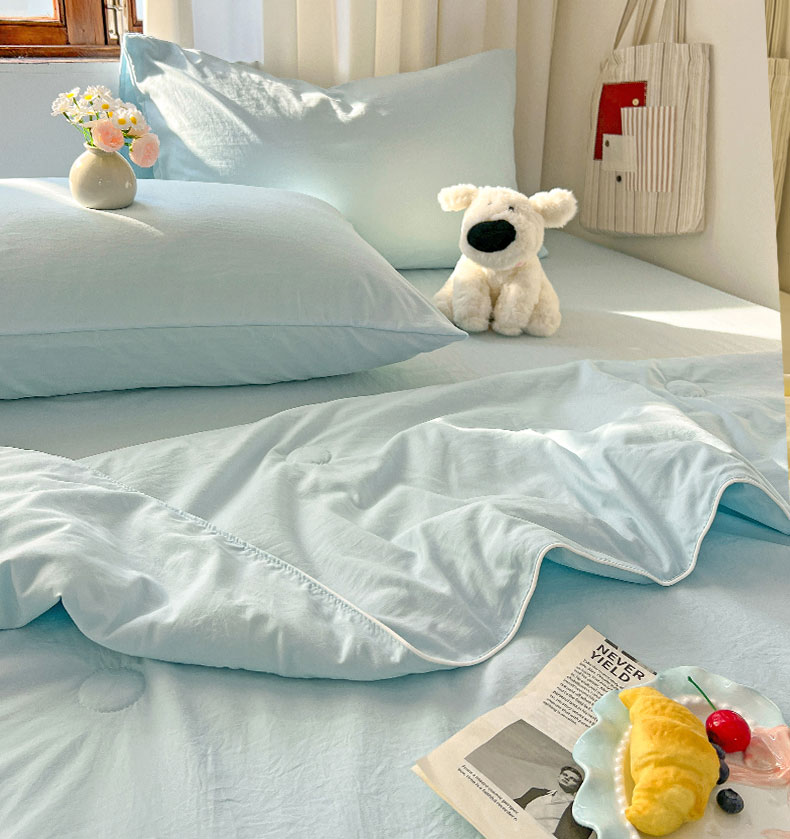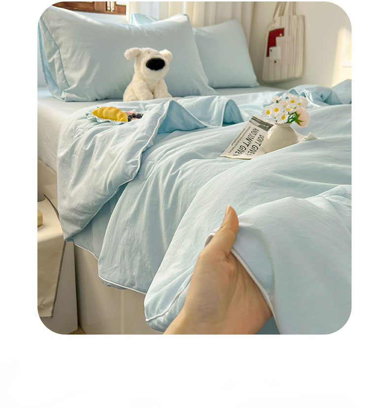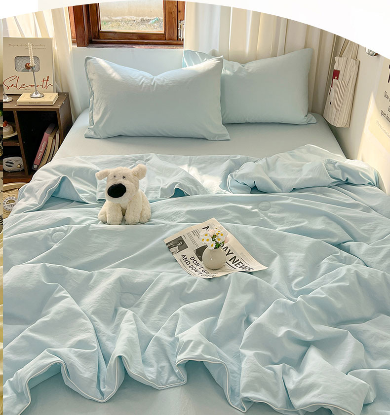 当前位置: 91家纺网 > 商品网购 > 床品套件 > 四件套 > 夏被四件套 > 冕悠家纺 2026春夏新款A类高克重超级无敌柔软水洗棉拼色夏被空调被夏凉被四件套 云水蓝-夏凉被