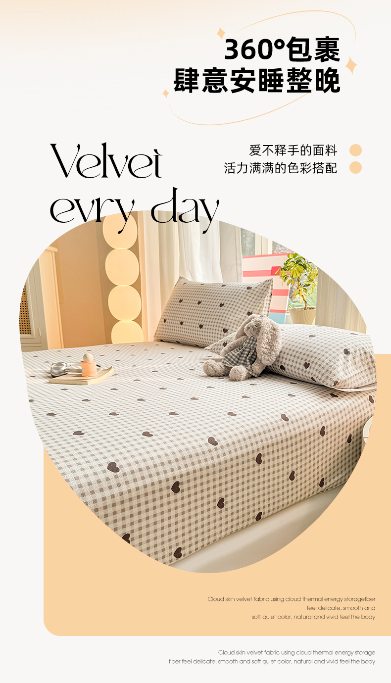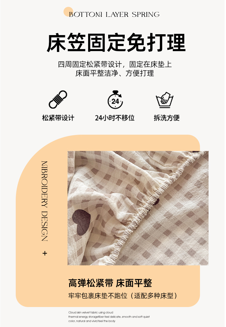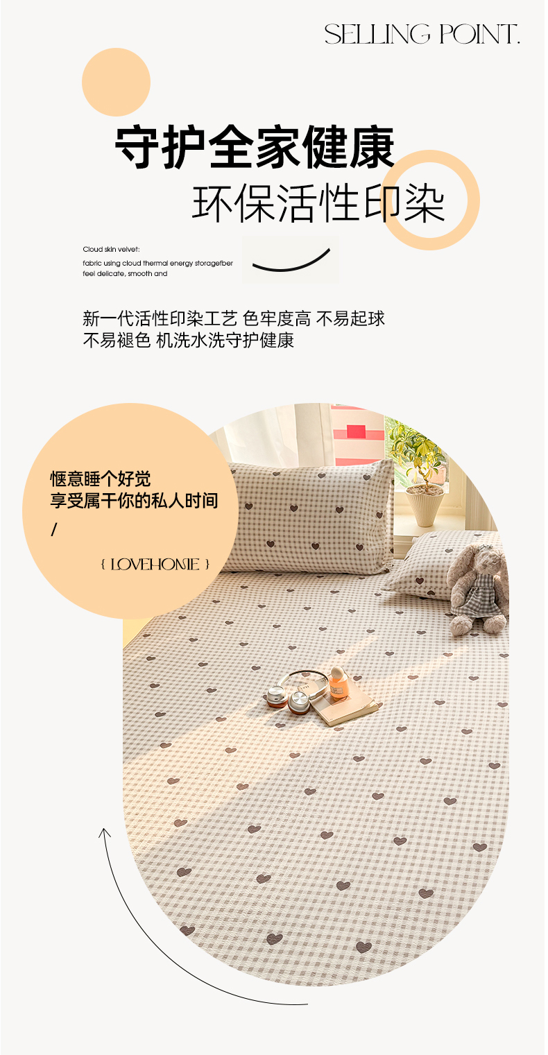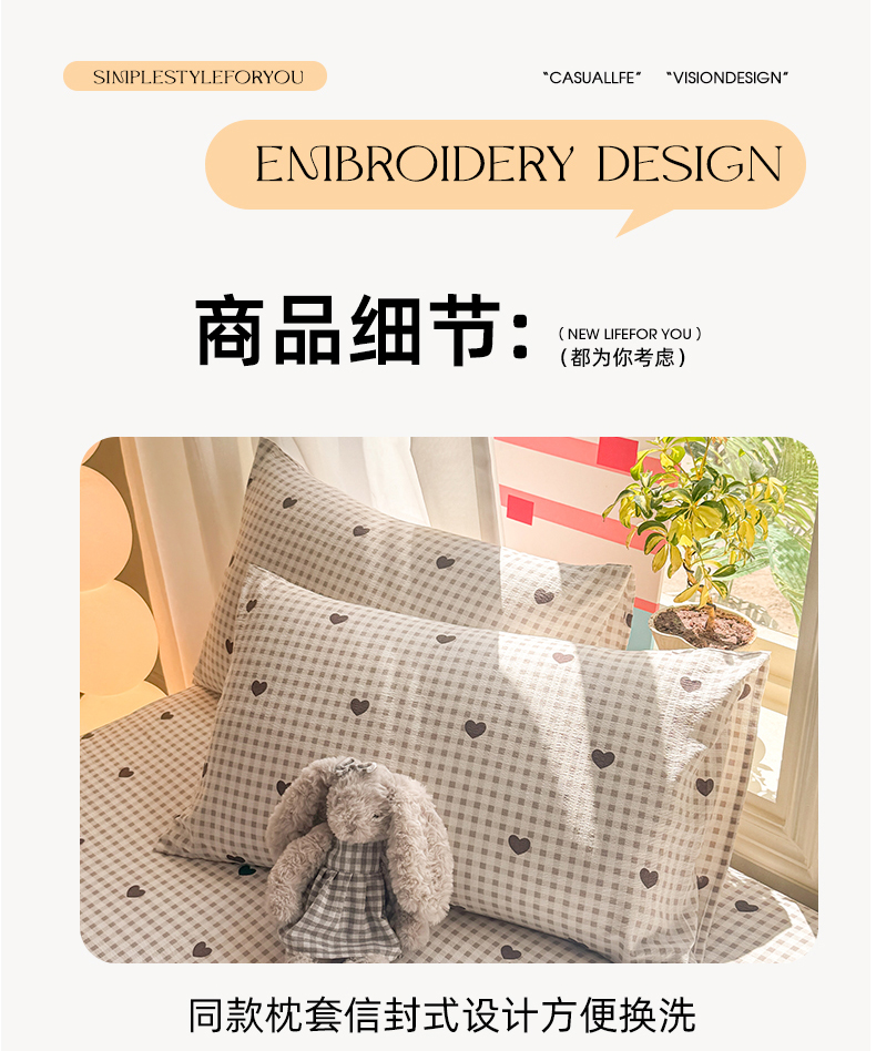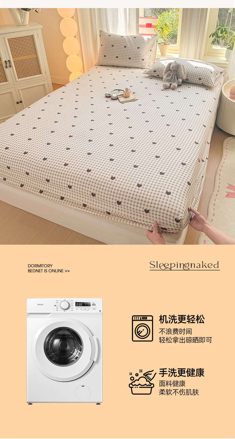 • 91家纺网 家纺一手货源 找家纺 丝芙妮家居 2026新款四季皱皱棉柔软透气不闷汗木棉床笠单件三件套-系列三 格纹爱心