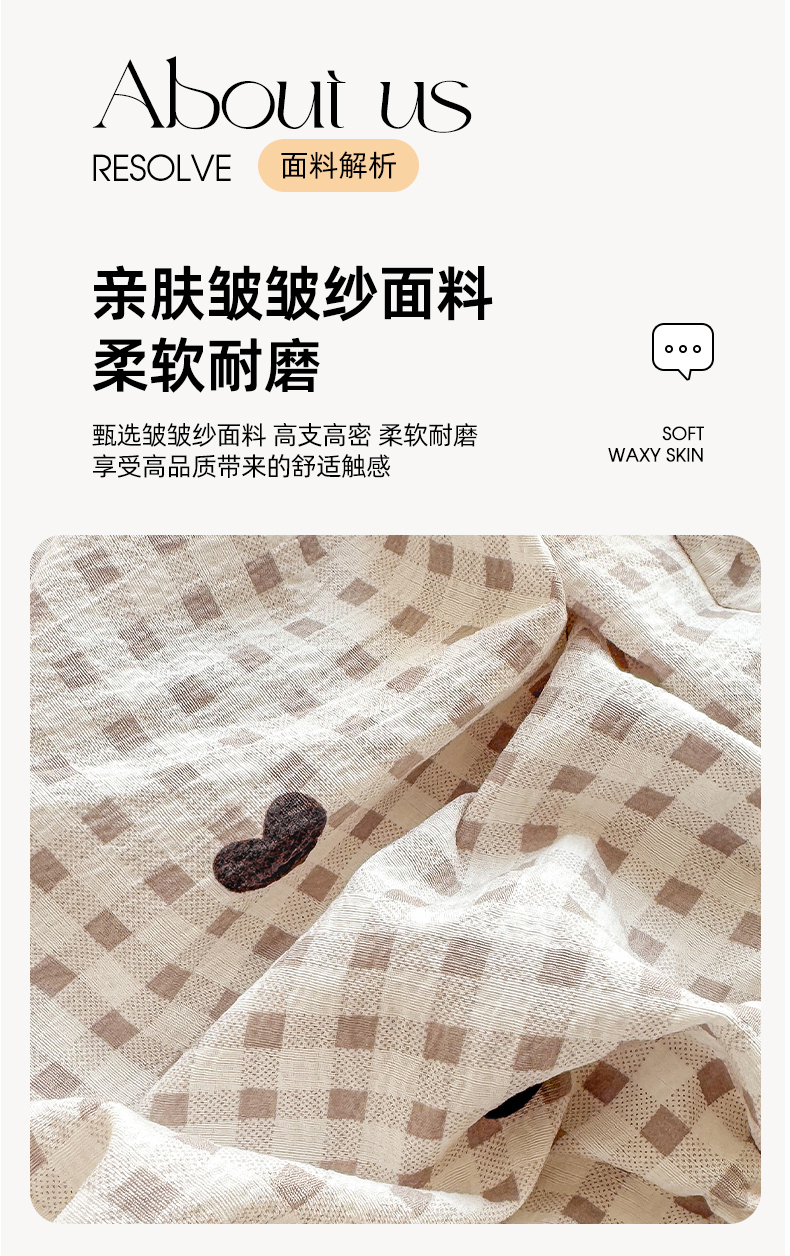 (总)丝芙妮家居 2026新款皱皱棉双层纱泡芙棉四件套,缤纷南瓜,春之约,格纹爱心,花清梦,花枝狗狗,假日小狗,莓果冰淇淋,草莓奶昔,泡芙蝴蝶结,浅川织格,素描花海,晚安甜心,星月点点,组合图仅做展示不可下单