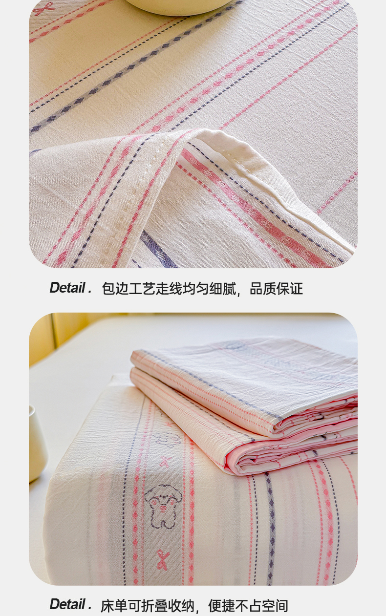 • 91家纺网 家纺一手货源 找家纺 灰鲸 2026新款全棉纯棉色织提花床单单床单床单单件 线条小狗-粉
