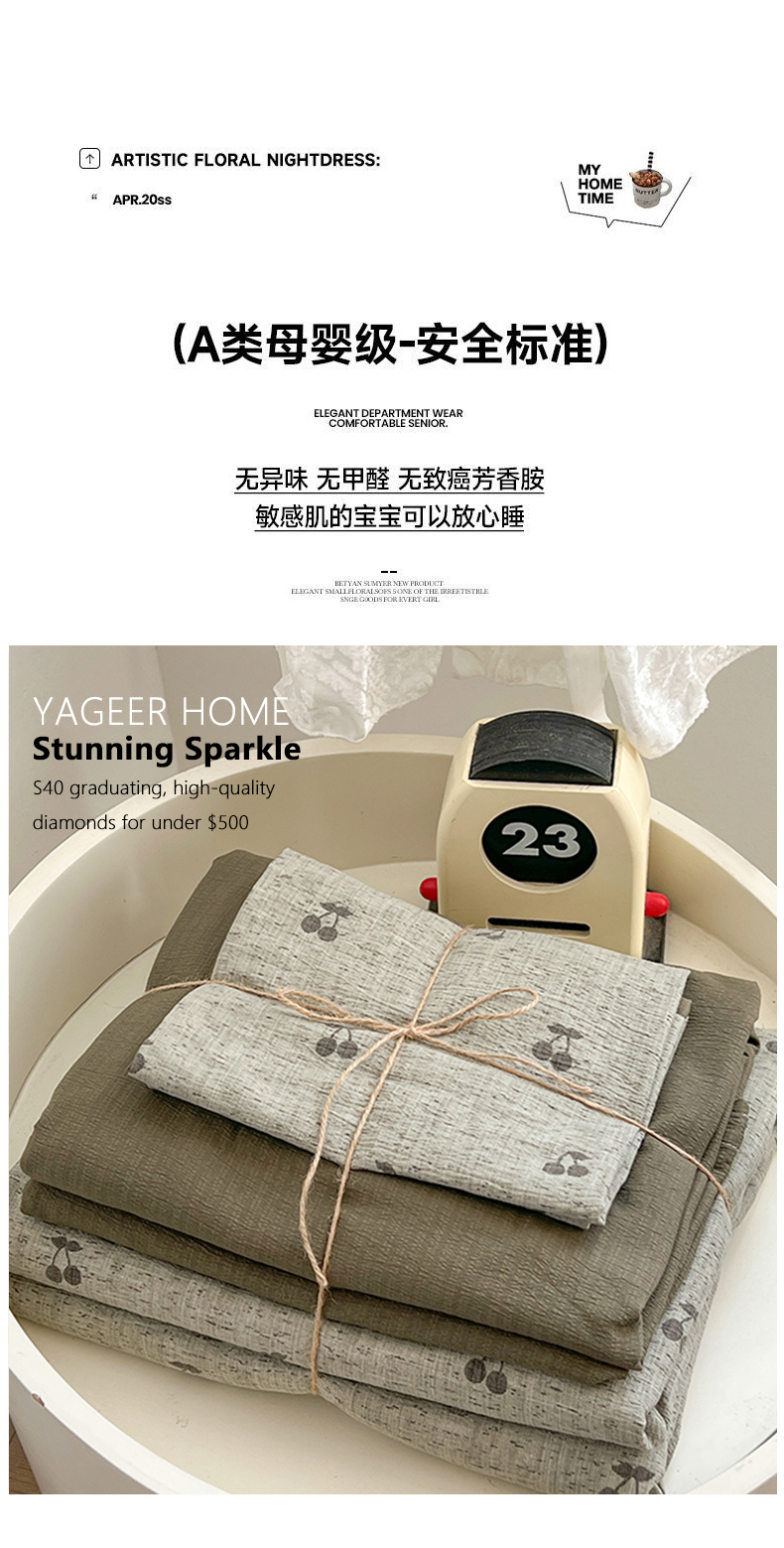 商品名称:朵朵家纺 2026新款高级感轻奢复古美拉德色系双层纱泡芙棉床品四件套加厚水洗双层纱软 绿樱