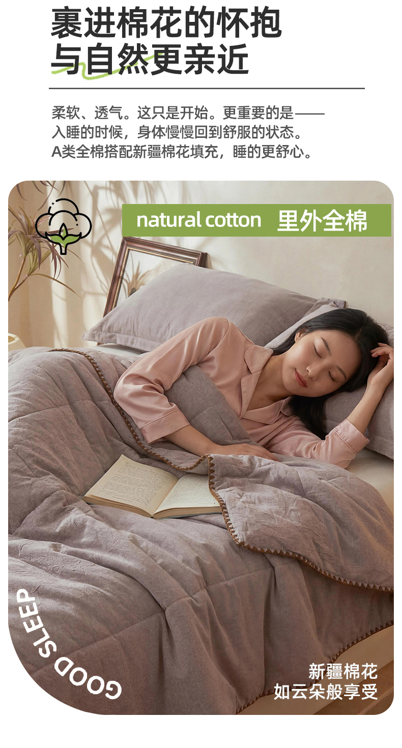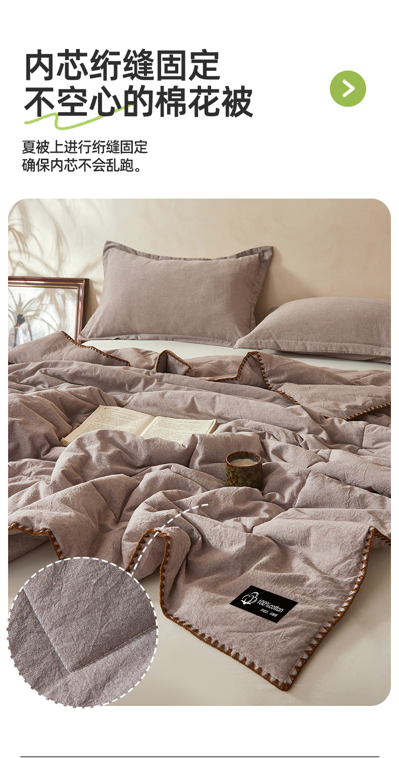 • 91家纺网 家纺一手货源 找家纺 阳光被业 2026新款100%棉花双层纱夏被新疆棉花空调被可机洗夏凉被绣边踩棉工艺 纯色--豆沙色