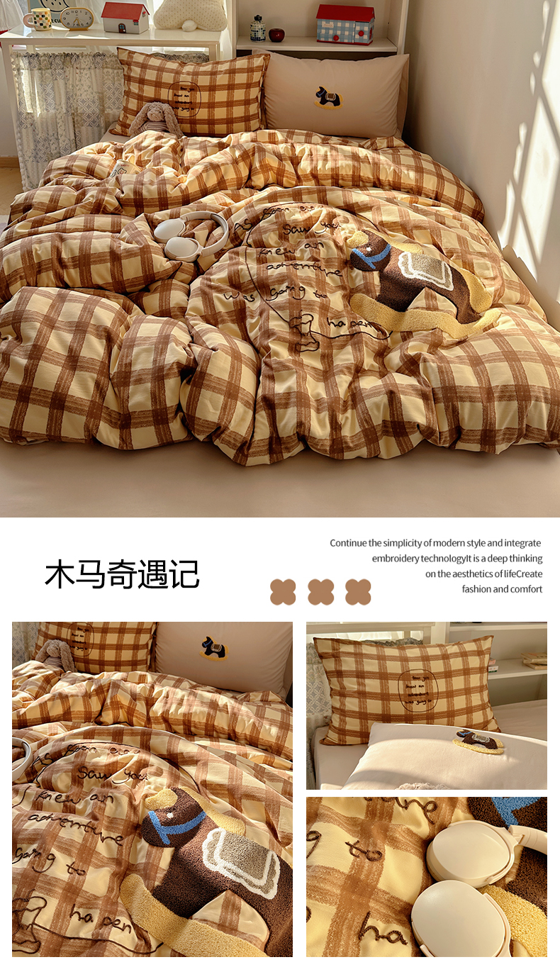 当前位置: 91家纺网 > 商品网购 > 床品套件 > 四件套 > 毛巾绣四件套 > 玉海棠家纺 2026新款高克重超软糯可爱系毛巾绣四件套 木马奇遇记